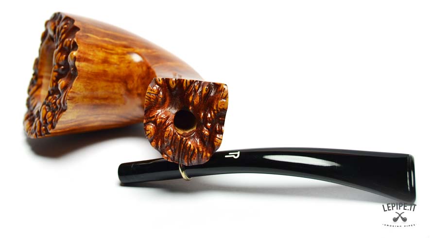 This extraordinary briar pipe belongs to the exclusive E.G. Rinaldo series — a new line personally signed by Elio and Guido Rinaldo, renowned master pipe makers. Each piece in this collection reflects their decades of expertise, passion, and artistic vision.