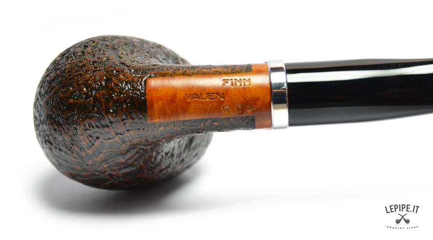 The Vauen pipe, model 504, features a classic Bent Billiard shape with slightly tapered bowl walls and a pronounced bend that ensures a stable and comfortable grip. Made from sandblasted briar, the dark finish reveals lighter highlights in the grain, offering a rich and natural contrast.