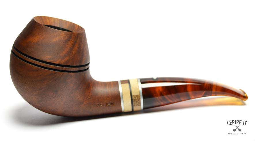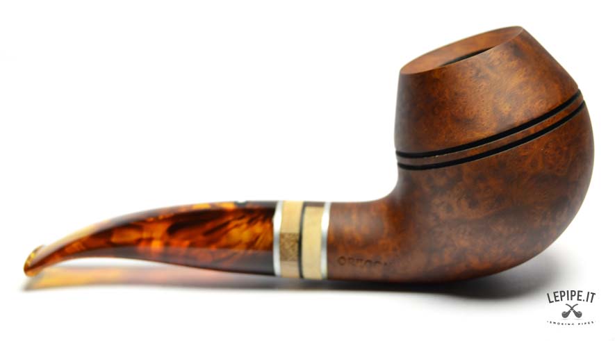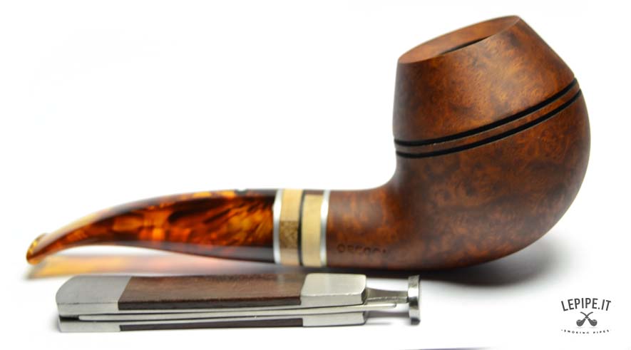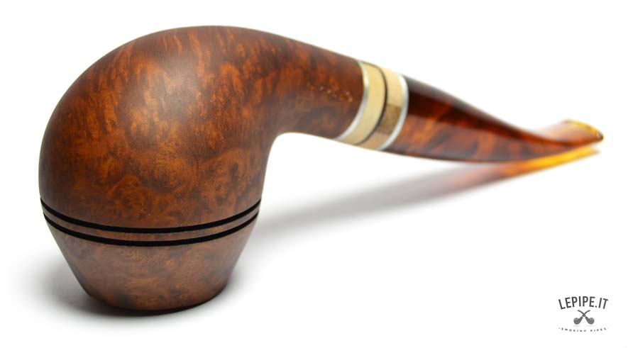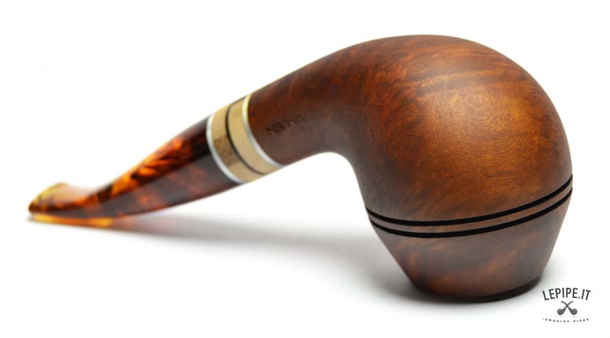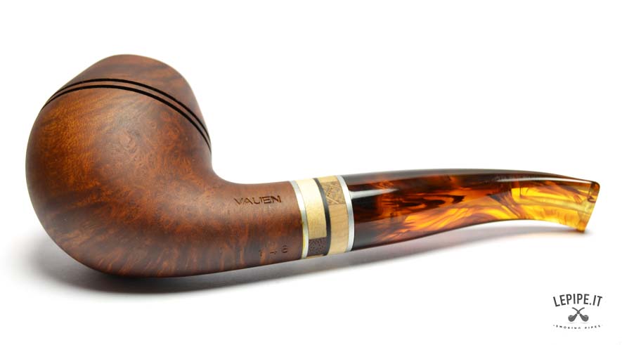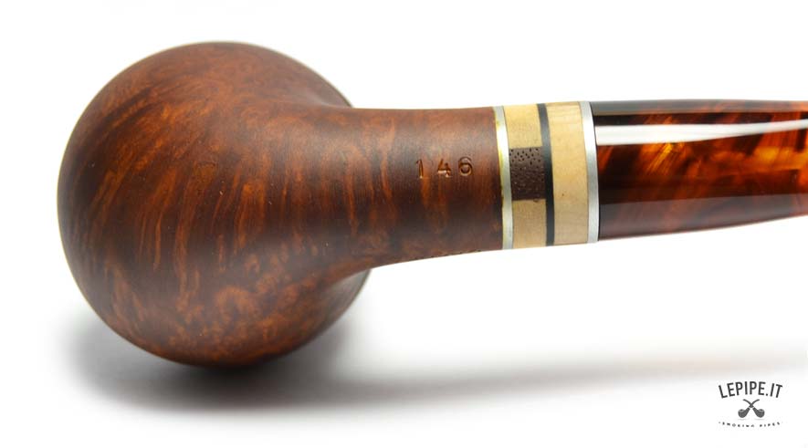 The Vauen Oregon model 146 stands out with its distinctive Rhodesian shape, featuring a rounded bowl crossed by two fine horizontal grooves that enhance its structure and add a touch of visual dynamism.