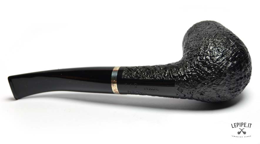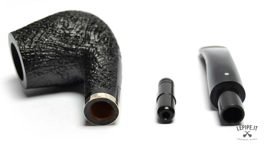 The black sandblasted finish enhances the briar’s natural texture, giving the pipe a bold, refined character. The irregular patterns carved by the sandblasting process make each piece uniquely expressive.