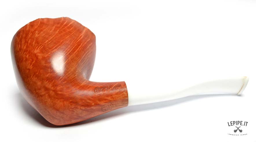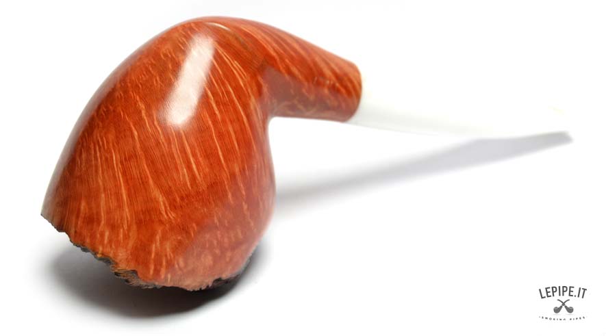 This Armellini pipe is a one-of-a-kind creation with a Freeform shape, featuring a smooth, flowing design that celebrates the natural character of the briar. The light-colored bowl stands out with its striking rustic, untreated rim, beautifully contrasting the flame-grain polished body.