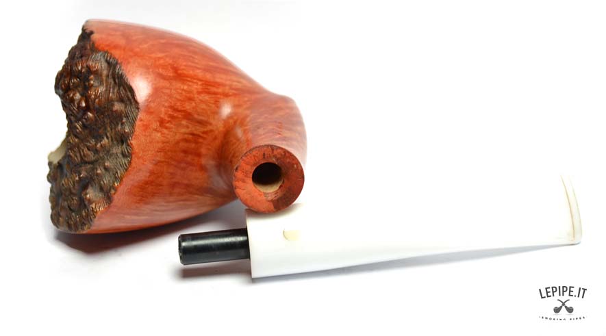 The white methacrylate stem adds an elegant, airy feel to the composition, enhancing the pipe’s refined and delicate aesthetic. Being a non-filtered pipe, it offers a fuller, more direct smoke—perfect for enthusiasts seeking a pure sensory experience.