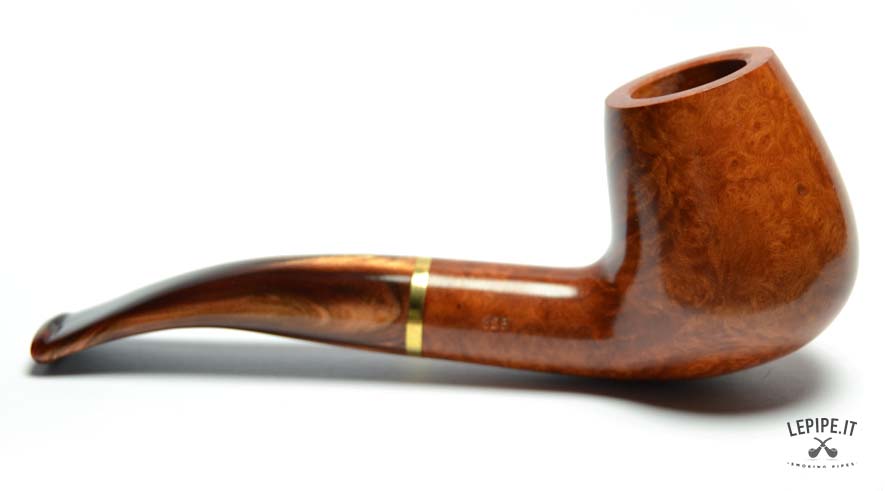 The Savinelli Model 626 pipe, part of the elegant Whisky series, offers a sophisticated take on the classic Bent Brandy shape. Defined by its rounded bowl and slightly flared walls, this form echoes the silhouette of a brandy glass. The gently curved stem ensures a comfortable grip and a relaxed smoking posture, making it ideal for extended sessions.