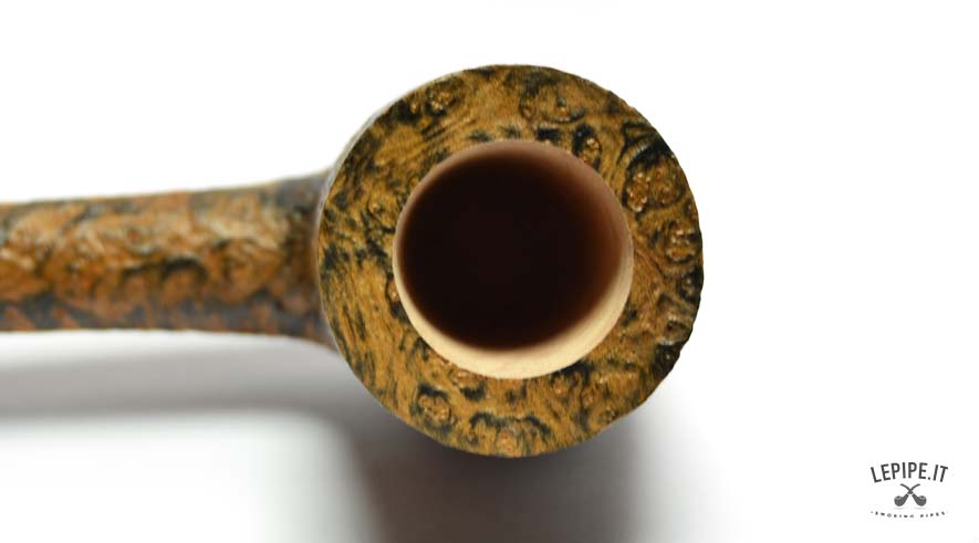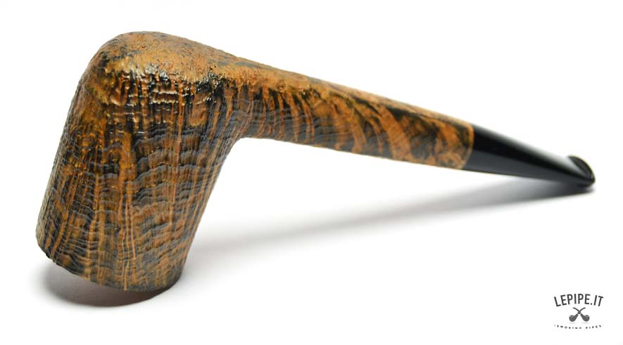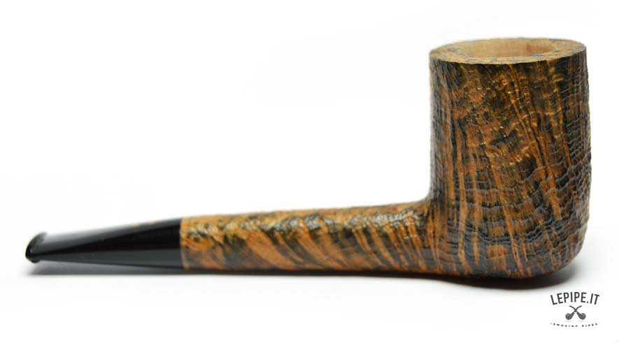 Sleek, minimal, and full of character — this Radice pipe in the Billiard shape is a perfect fusion of tradition and personality. Its clean silhouette is elevated by a deep sandblast finish that follows the natural grain of the briar, highlighting every nuance with a rich, tactile texture. The warm color palette, ranging from golden hues to earthy browns, gives the pipe a rustic yet refined appearance. A particularly appreciated detail is the flat bottom, which allows the pipe to stand upright on its own, adding a layer of practicality and convenience during smoking breaks. The black methacrylate stem is glossy, precise, and seamlessly connected to the shank. Measuring 133 mm in length and 51 mm in height, this Billiard offers generous yet balanced proportions — ideal for slow, satisfying sessions. It is filterless, crafted for those who seek the pure, unaltered flavor of their tobacco. A pipe that combines classic form, smart functionality, and the unmistakable Radice touch.