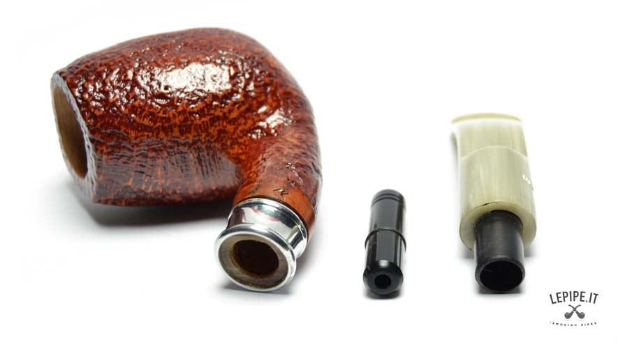 Pipa Santambrogio - Sabbiata n. 189  Bocchino in metacrilato Con sede per filtro da 9 mm. Sabbiata Con altra elaborazione Diametro Interno: 21 mm. Diametro Esterno: 40 mm. Lunghezza: 135 mm. Altezza: 53 mm. Peso: 58 gr. Profondità: 42 mm.