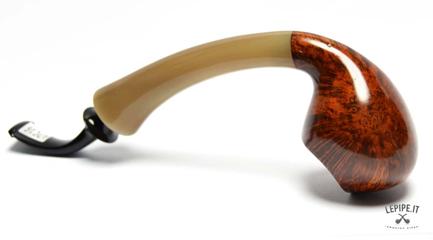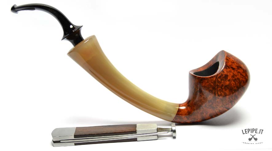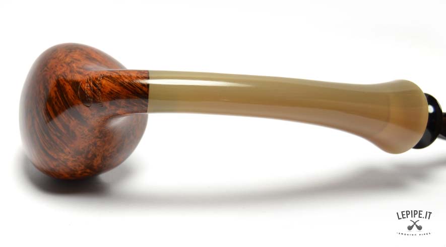 The most striking element is the horn shank, with its warm, natural tones creating a fascinating material contrast with the briar. Its curved form enhances the overall flow, giving the pipe elegance and dynamism.