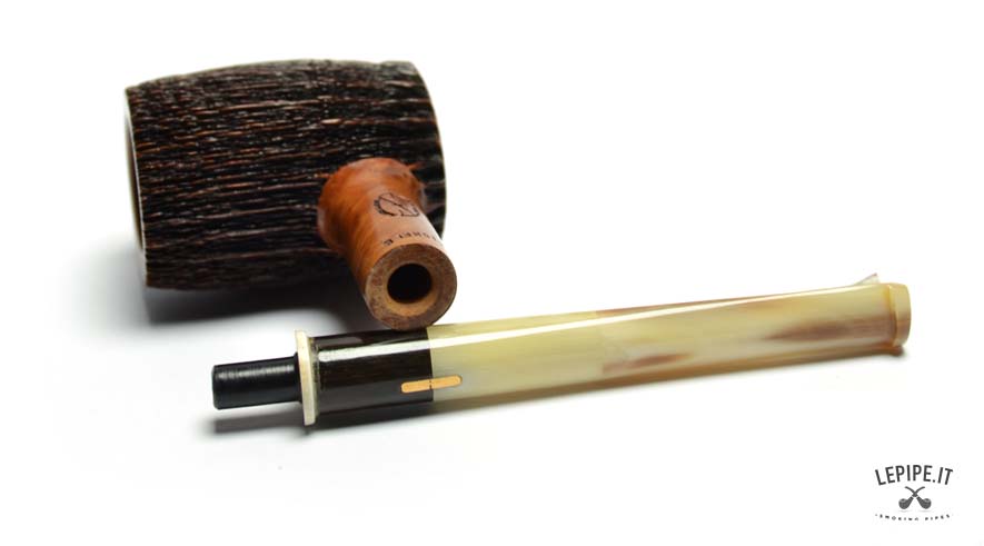 The Amorelli 3 Stelle Poker Stand-Up pipe is a tribute to functional simplicity, enriched with handcrafted details that give it a distinctive personality. Its classic Poker shape, with a cylindrical bowl and flat bottom, allows the pipe to stand upright on its own, offering excellent stability and practicality for everyday use. The bowl is made from quality Italian briar and features a tightly carved vertical rustication that adds strong visual texture and contrast against the smooth, polished shank. A standout feature is the horn stem, with its natural, multicolored marbling that makes each piece truly one of a kind while adding a rustic and authentic charm. The transition between shank and stem is accentuated by a dark ring that elegantly separates the warm wood from the horn’s organic tones. This pipe is part of the 3 Stelle line, Amorelli’s designation for well-made pipes offering solid performance and personality at an accessible level. A reliable and visually striking pipe, designed to bring everyday smoking pleasure with understated elegance.