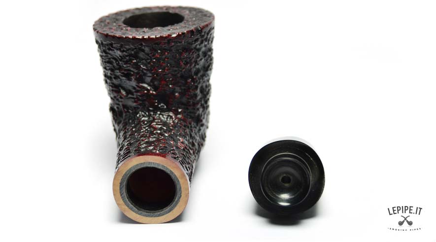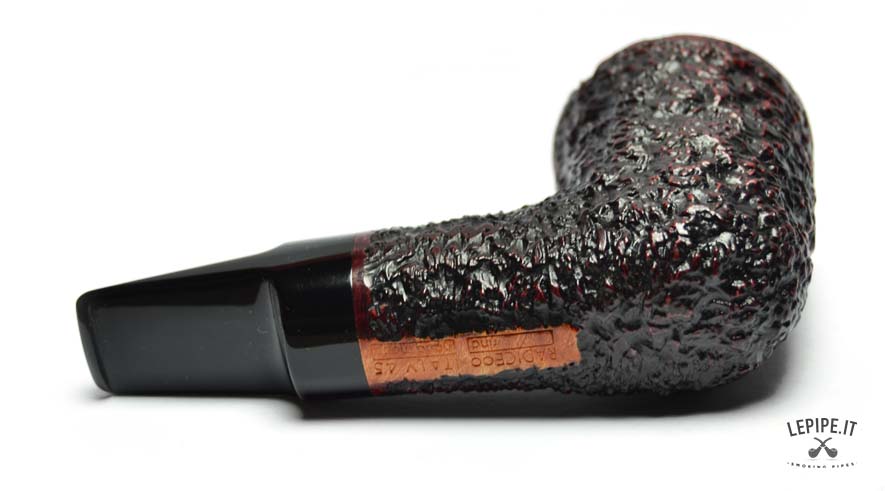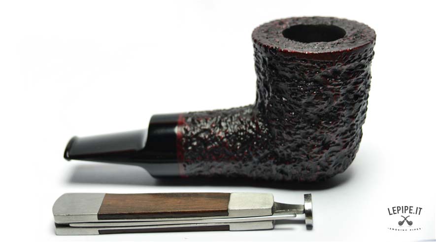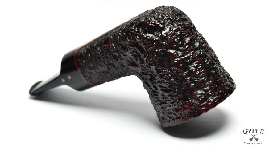 The deeply rusticated finish in dark tones with bordeaux highlights gives the briar a bold, textured appearance, while the Stand-Up design allows the pipe to rest upright, making it ideal for both daily use and stylish display.