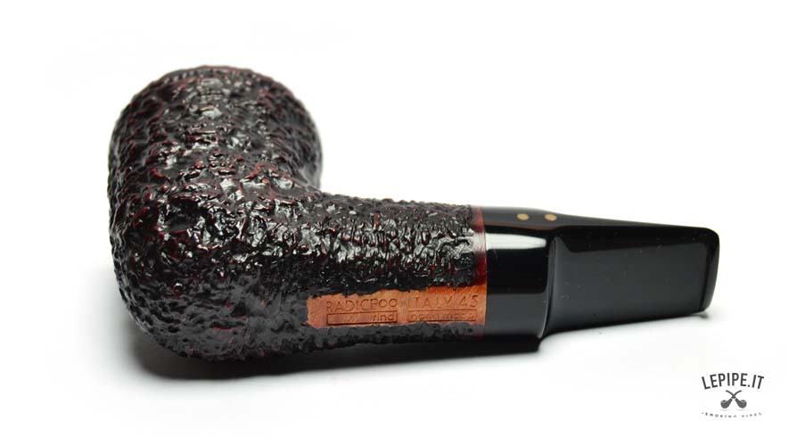 This Radice pipe perfectly blends technical innovation with traditional craftsmanship. The classic Dublin shape, with its flared bowl and elegant lines, is paired with the advanced Aero Calabash Reverse system, designed to enhance smoke cooling and dryness through an internal condensation chamber.