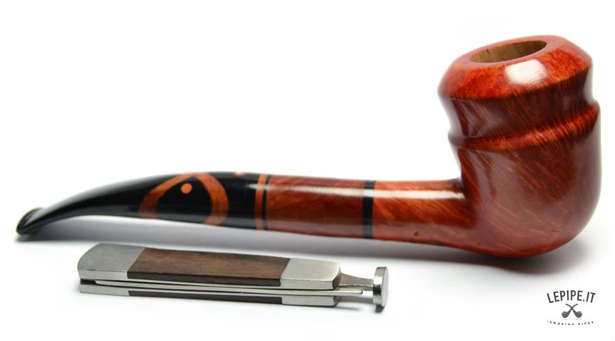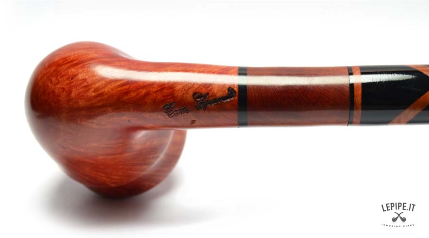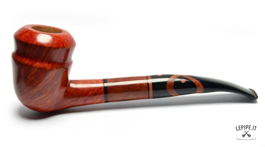 A pipe with a distinctly handcrafted character and a freeform shape, combining elegance and originality thanks to its selected briar with lively grain patterns and a glossy finish that enhances its natural depth.