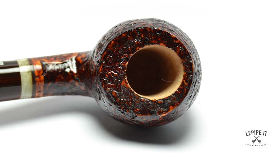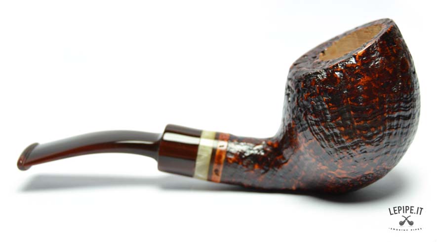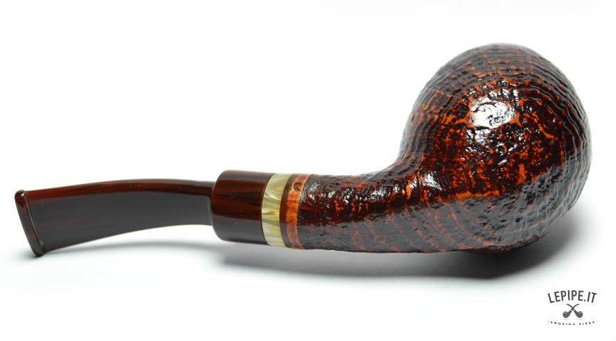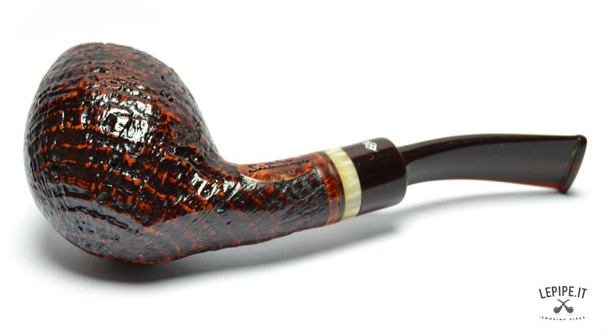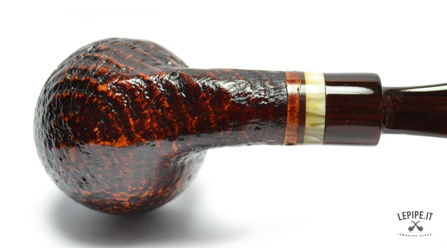 Practical and well-balanced, this Pear-shaped pipe from Santambrogio features a Stand-Up design, allowing it to rest upright on flat surfaces without a stand — an ideal choice for daily use. The bowl is made from sandblasted briar, with a dark finish that highlights the wood's natural grain. The compact, slightly forward-leaning shape provides a comfortable grip and easy handling. The curved methacrylate stem in brown is accented by a decorative band with light and wooden tones, offering a subtle yet elegant contrast. Fitted with a 9 mm filter chamber, this handmade Italian pipe allows for a personalized, drier smoke. A simple but well-crafted pipe — perfect for those looking for a filtered pipe with a clean and practical design.