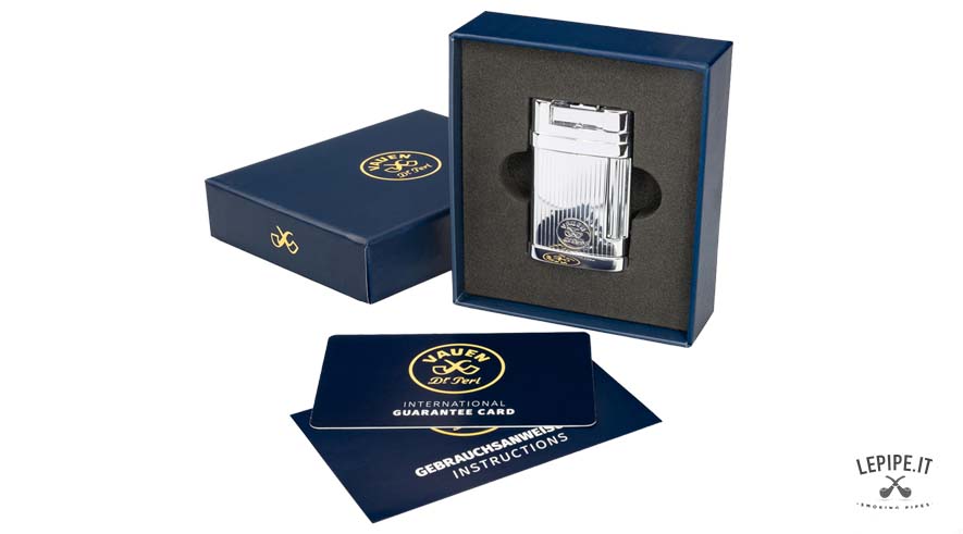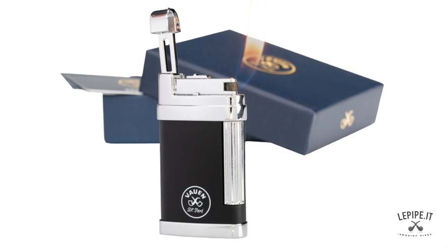 Refillable gas lighter with flint ignition and angled flame, perfect for pipe smokers. Slim design with rounded edges for a comfortable grip. Lightweight (69 g) and practical, crafted with high-quality materials.