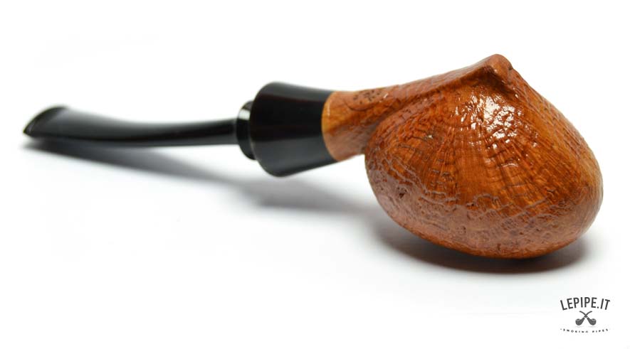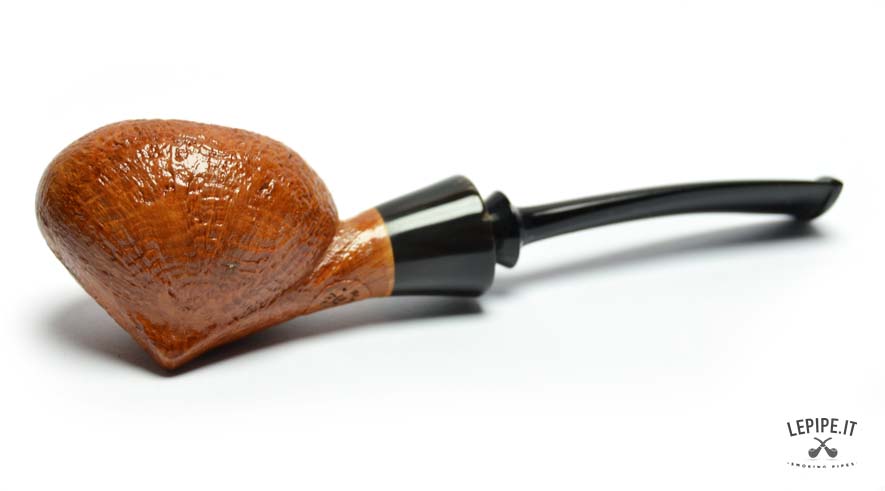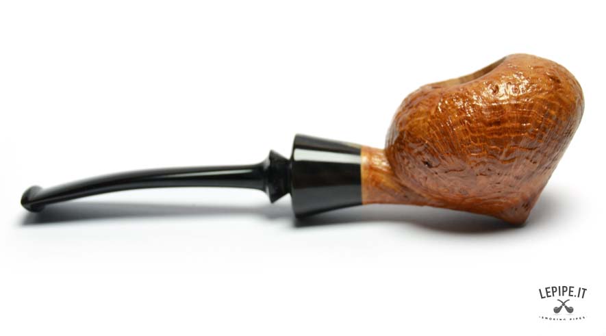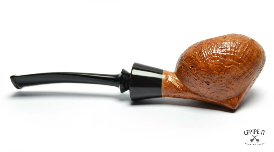 This Freeform pipe by Manù, the brand of Italian artisan Emanuele Bruno, is a striking example of how art and daily function can merge seamlessly. The freehand shape follows the natural flow of the briar and the artisan’s creative inspiration, resulting in a one-of-a-kind piece full of organic character. The expertly sculpted bowl unfolds in a dynamic, asymmetrical structure, enhanced by a partially sandblasted finish that highlights the wood’s density variations and adds rich visual and tactile depth. The transition to the slightly curved ebonite mouthpiece brings balance and refinement to the composition. Weighing just 33 grams, this pipe offers a comfortable, well-balanced smoke—ideal for those who seek both functionality and expressive design. A distinctive handmade Italian pipe for those who appreciate unconventional shapes that reflect the artisan’s creative identity.