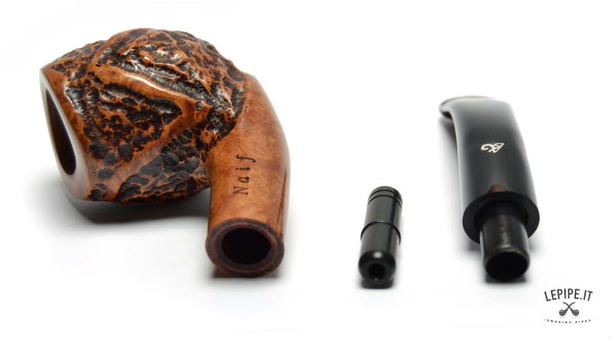 Pipa Viprati - Naif n. 1  Bocchino in metacrilato Con sede per filtro da 9 mm. Rusticata Senza elaborazione Diametro Interno: 20 mm. Diametro Esterno: 42 mm. Lunghezza: 147 mm. Altezza: 48 mm. Peso: 56 gr. Profondità: 48 mm.