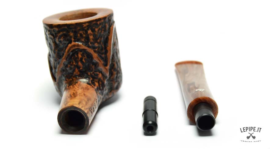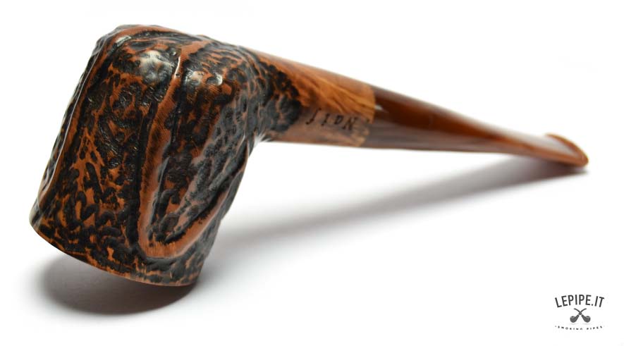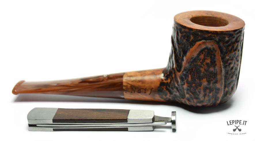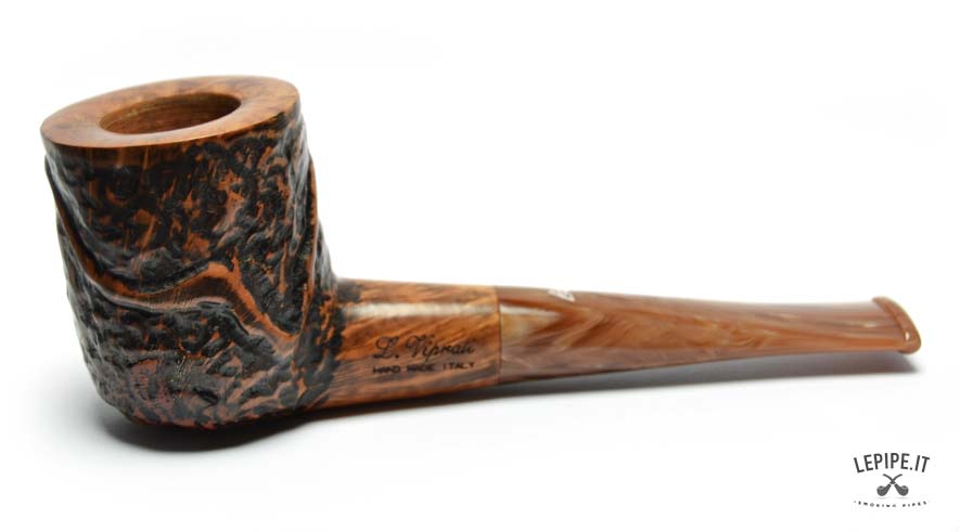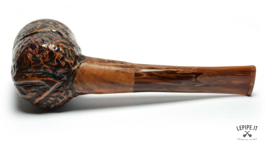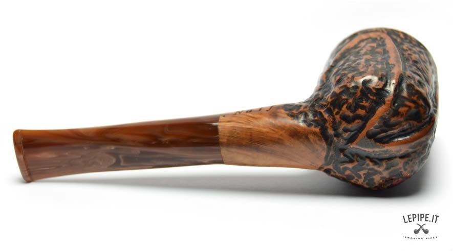 Rustic elegance and handcrafted mastery meet in this unique piece by L. Viprati: a pipe entirely handmade in Italy, combining the classic Billiard shape with distinctive Naif rustication that gives the briar a lively, textured character. The stand-up design allows it to rest upright with ease, making it a perfect companion for moments of quiet reflection or pause. The balance between the rough-hewn bowl and the smooth rim highlights the natural grain of the wood, while the amber-marbled acrylic stem introduces warmth and sophistication. Marked with Hand Made in Italy, this pipe is designed to be both enjoyed and appreciated as a piece of fine craftsmanship.