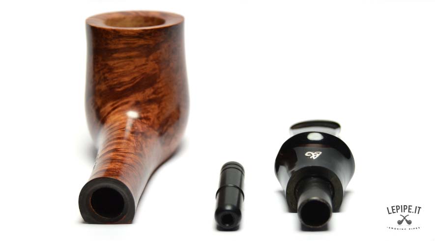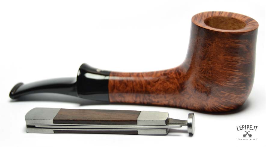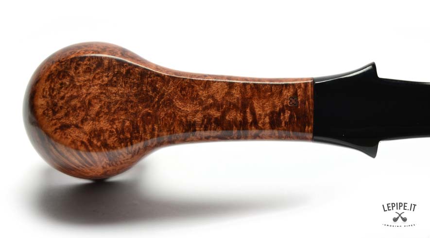 The L. Viprati Quadrifoglio 1 features a Poker Stand-Up shape that combines stability and clean lines, offering both practicality and visual appeal. It’s a pipe that rests naturally on any surface, designed to accompany moments of pause with simplicity and elegance. The bowl, turned from high-quality flame grain briar, displays a smooth, polished finish that highlights the wood’s natural grain, with warm tones ranging from honey to chestnut. The slightly bent black acrylic stem fits seamlessly into the shank, completing a compact and harmonious structure. It comes with a 9 mm filter chamber, perfect for those who enjoy a dry, fresh, and balanced smoke. Essential in form yet rich in personality, it’s ideal for those who appreciate simplicity paired with fine craftsmanship.
