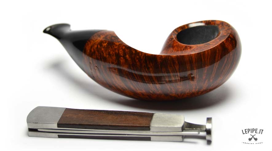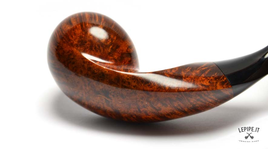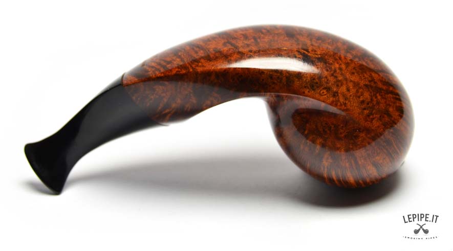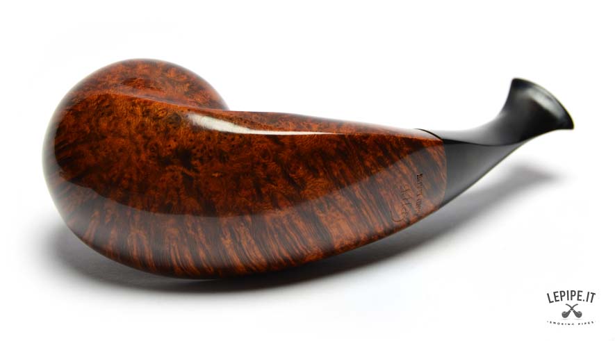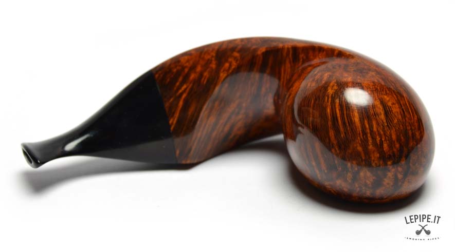 Compact, sculptural, and perfectly balanced, this Freeform pipe weighing 41 grams is one of the most distinctive expressions of Wilson Wang’s work for C-PIPE. The flamed briar is enhanced by a high-gloss finish that brings out the natural grain contrasts, while the organic shape fits effortlessly in the hand. A short, slightly curved stem completes a design that breaks with tradition while remaining entirely functional. This pipe embodies an Eastern aesthetic vision: harmony, balance, and deep respect for natural materials.