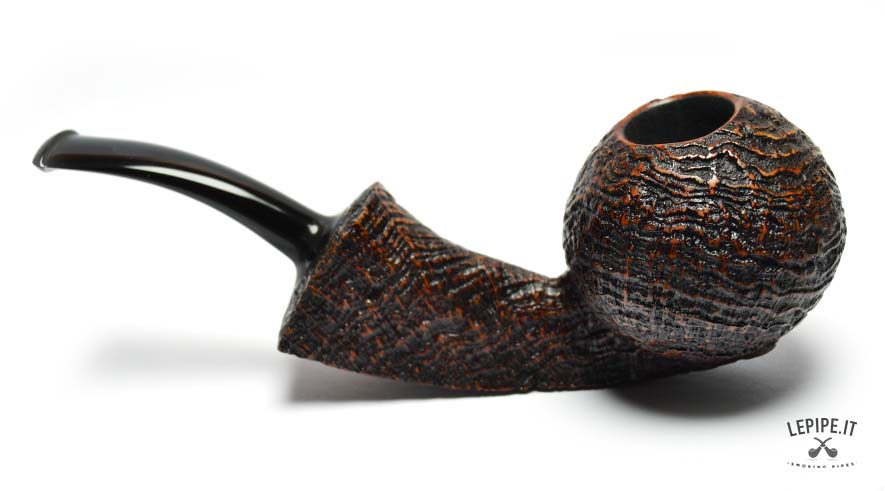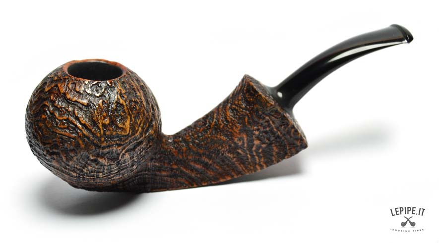 This Bent Apple pipe by C-PIPE reflects the harmony of shape and substance that defines the work of Wilson Wang, founder of the artisanal workshop established in Shanghai in 2012. Measuring 148 mm in length, it features a deep sandblasted finish that enhances the briar grain and provides a secure grip. The flat base allows it to stand upright, combining function with a compact, dynamic look. Like all C-PIPE creations, it is a one-of-a-kind piece, crafted from premium materials and finished with great attention to detail.