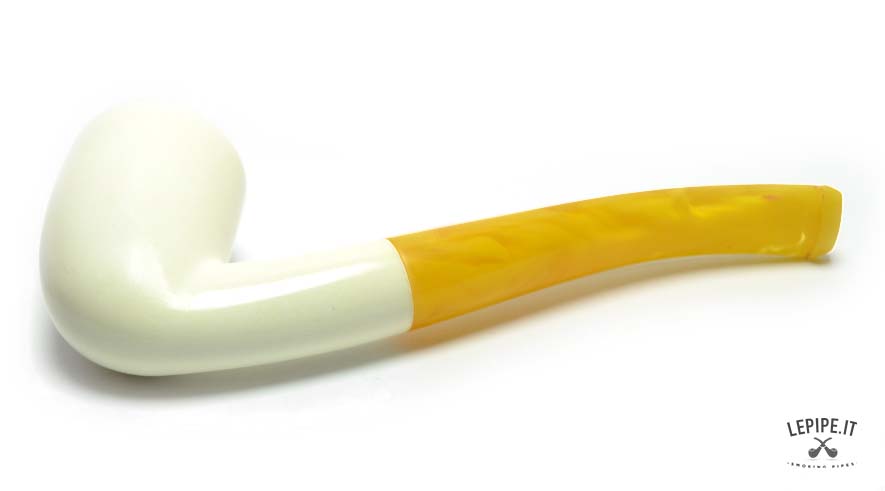 Weighing 43 grams, this Bent Billiard meerschaum pipe features a smooth finish that blends elegance with everyday practicality. Its gently curved shape and amber-toned stem provide a comfortable, relaxed smoking experience. One of meerschaum’s most valued traits is its high porosity, which helps absorb moisture during the smoke, enhancing flavor and minimizing tongue bite or gurgling. A reliable choice for those who appreciate consistency and a clean, refined taste.