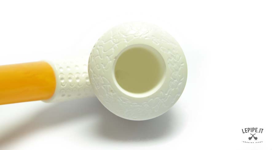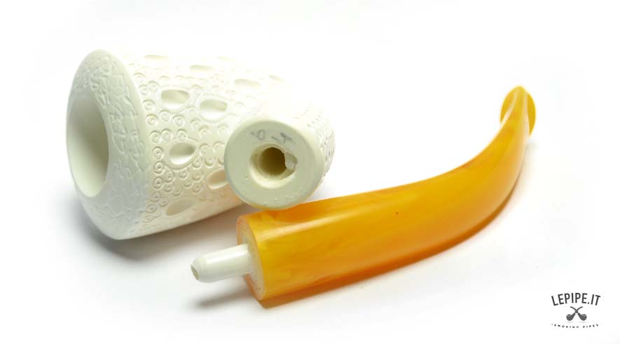 Pipa Şekercioğlu - Meerschaum n. 20  Bocchino in metacrilato Senza filtro Rusticata Senza elaborazione Diametro Interno: 19 mm. Diametro Esterno: 38 mm. Lunghezza: 132 mm. Altezza: 49 mm. Peso: 35 gr. Profondità: 37 mm.