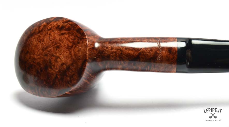 The smooth briar finish highlights a strong vertical grain, enhanced by warm brown tones that add depth and refined elegance.