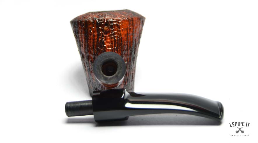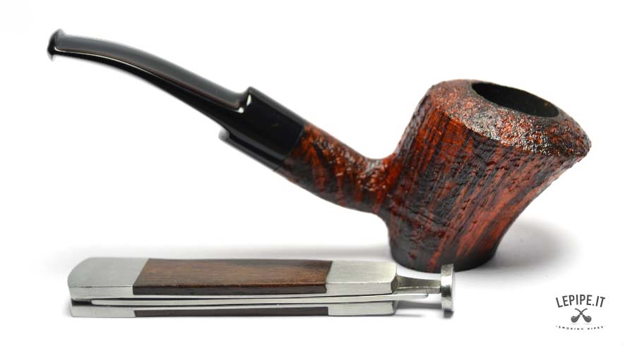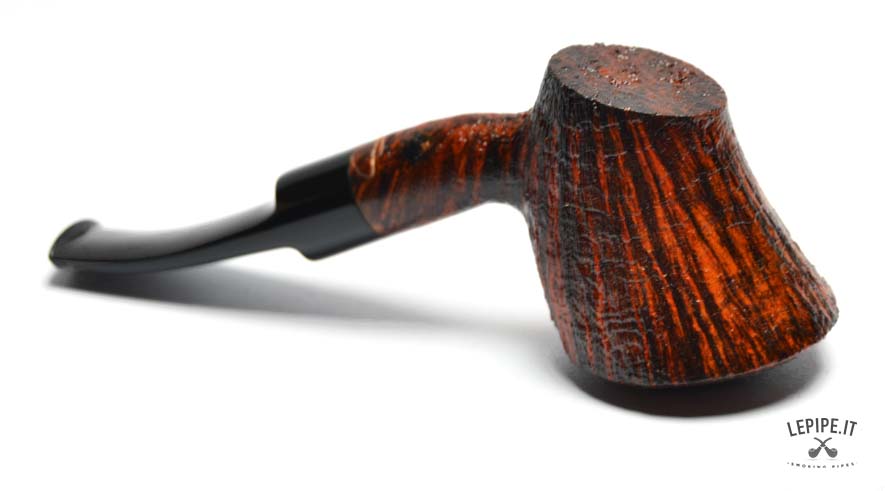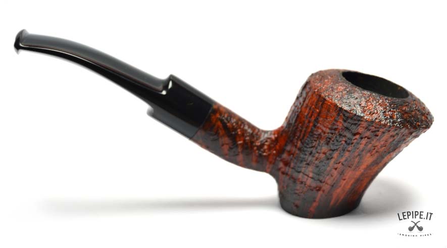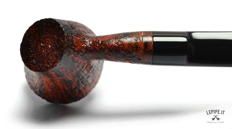 The sandblasted finish, in warm and deep tones, enhances the natural grain of the briar, creating a refined textural contrast. The slightly more rugged rim adds an extra touch of character and authenticity.