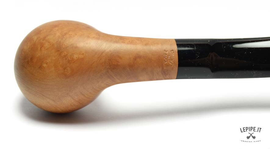 This Chacom Clover Bent Apple is defined by its rounded and compact bowl, featuring soft, embracing proportions typical of a shape designed for comfort and ergonomic ease. The gentle curve of the shank flows naturally into the glossy black acrylic stem, creating a smooth and elegant silhouette. The smooth natural finish highlights the subtle grain of the briar, giving the pipe a bright and refined appearance. With a height of 30 mm and a weight of 36 grams, this model offers lightness, balance and everyday smoking pleasure.