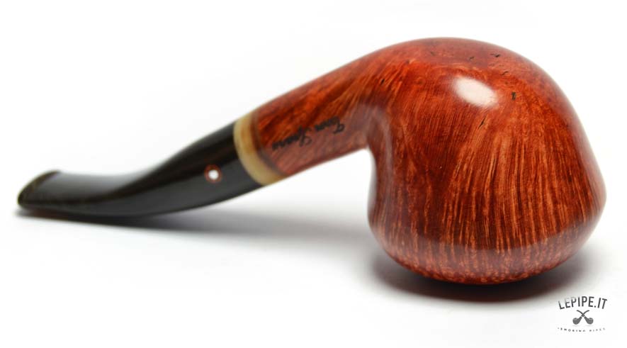 The high-quality briarwood, finished with a smooth polish, highlights the beautiful grain and tones ranging from amber red to deep brown. The polished surface gives the pipe a warm and appealing appearance.