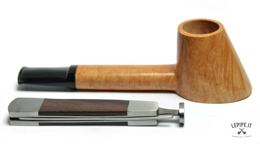 This handcrafted Bacigalupi pipe features a refined Volcano shape with a Stand-Up base, designed for both stability and convenience during use and display. Made from high-quality, light-colored briar, the smooth surface showcases fine grain patterns that reflect the authenticity of the natural wood. The clean lines and conical bowl give the pipe a modern, essential look, perfectly balancing form and function. The ebonite stem integrates seamlessly into the design, providing a softer bite and superior comfort. The engraved marking “1 Ancora” attests to the uniqueness of this piece within the artisan's collection. A solid, elegant, and well-balanced pipe—perfect for those who value pure design and Italian craftsmanship.