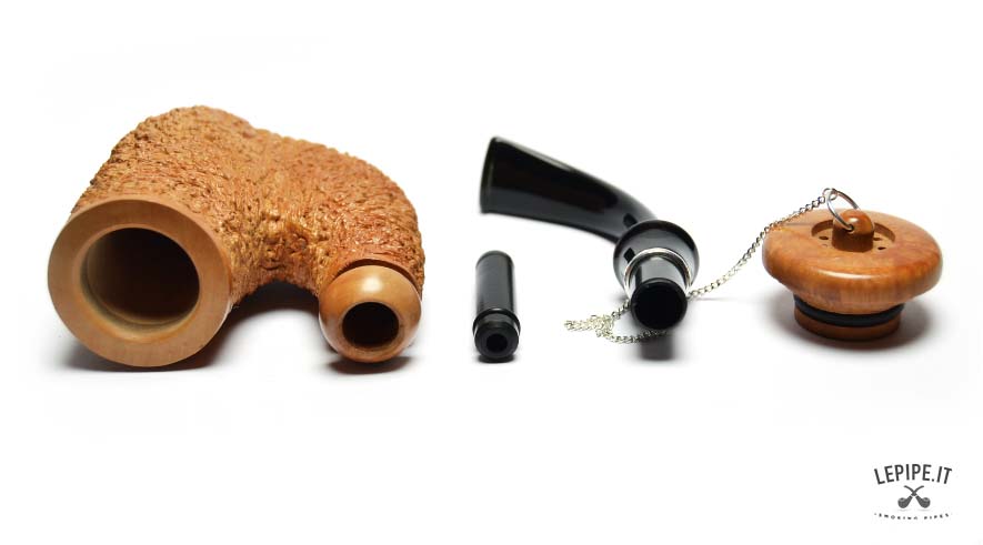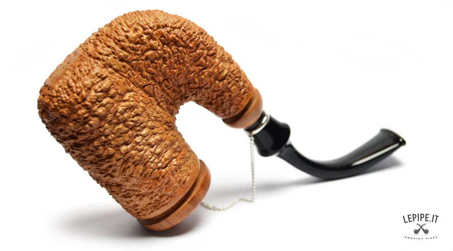This Brebbia pipe, with a light rustic finish, is a perfect example of the brand's craftsmanship. The rustic finish gives the pipe a rough, irregular surface, distinguished by its lighter color, providing the pipe with a natural and distinctive look. The Oom Paul shape, known for its wide and curved design, ensures a comfortable and relaxing smoke. The curved mouthpiece adds further comfort during use. Additionally, this pipe is compatible with 9 mm filters, offering a fresher and drier smoking experience. A great combination of aesthetics and functionality, reflecting the unmistakable quality of Brebbia.