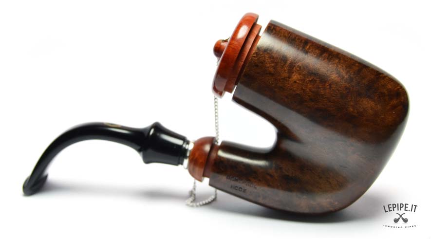 This Brebbia pipe, with a cherry finish, is a perfect example of the brand's craftsmanship. The cherry finish gives the pipe a rich, warm color with a smooth, polished surface that enhances the natural beauty of the briar. This type of finish adds elegance and refinement to the pipe, making it ideal for those who appreciate unique and sophisticated pieces.