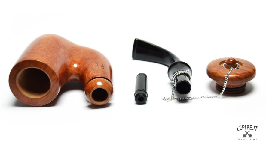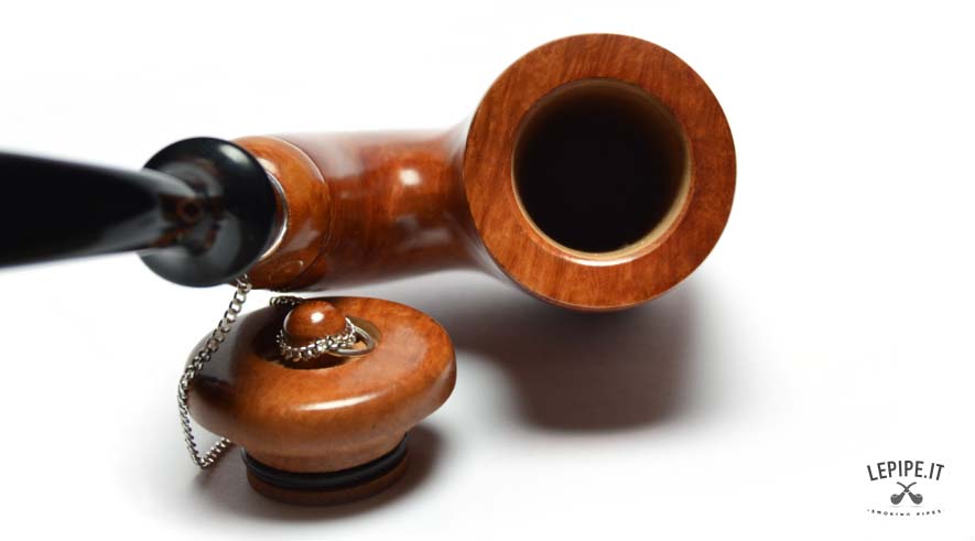 A distinctive feature of this pipe is the lid, which not only adds elegance to the design but also serves a vital practical function. The lid helps protect the tobacco, maintaining the ideal temperature and humidity. With small holes for controlled combustion, it prevents the tobacco from going out or being wasted, especially in outdoor conditions. It is particularly useful when smoking outside, protecting the ember from wind and flying ash. The lid attaches directly to the bowl of the pipe, providing both convenience and functionality.