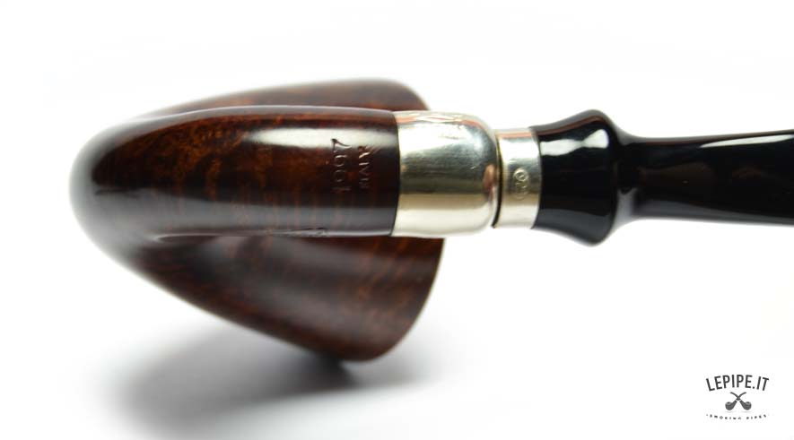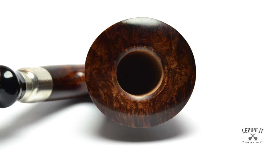 This Brebbia pipe, featuring a Pura Noce finish, showcases one of the classic aesthetic styles of the Italian maker. The name “Pura Noce” refers to a smooth, polished finish with a rich walnut-like color that enhances the briar’s natural beauty without additional decorative effects. This finish is ideal for smokers who appreciate a refined, understated look where warm tones take center stage.
