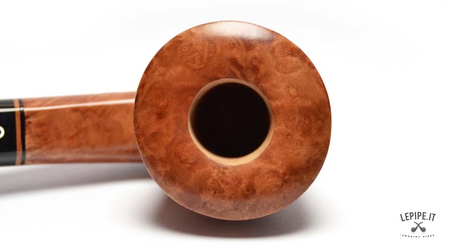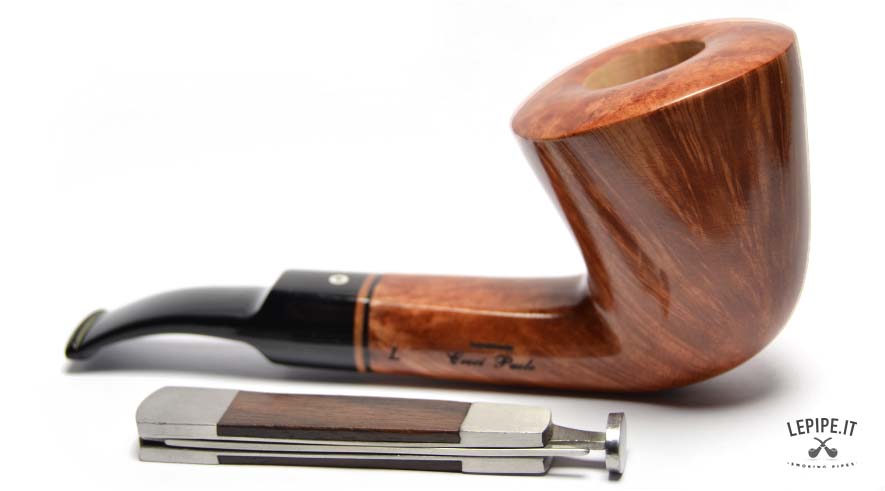 This pipe is crafted from high-quality briar, carefully selected and masterfully worked by Talamona, an Italian brand synonymous with artisanal excellence in the pipe-making tradition. Its polished surface reveals natural grain patterns that speak of both the wood’s origin and the artisan’s touch. A sleek black acrylic stem completes its clean and refined look.
