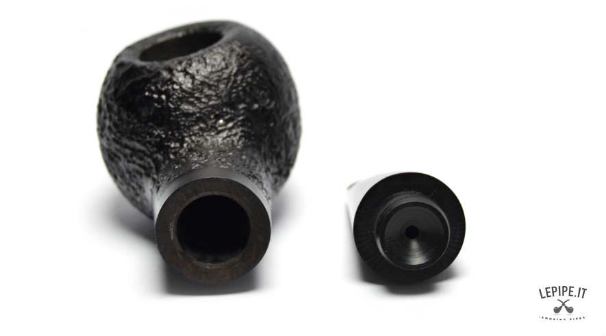 This pipe is equipped with a Calabash reverse filter system, designed to reduce moisture and deliver a drier, smoother draw. The short, glossy black acrylic stem completes its compact and efficient profile.