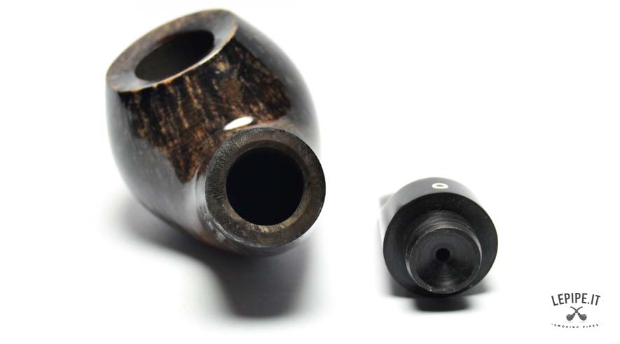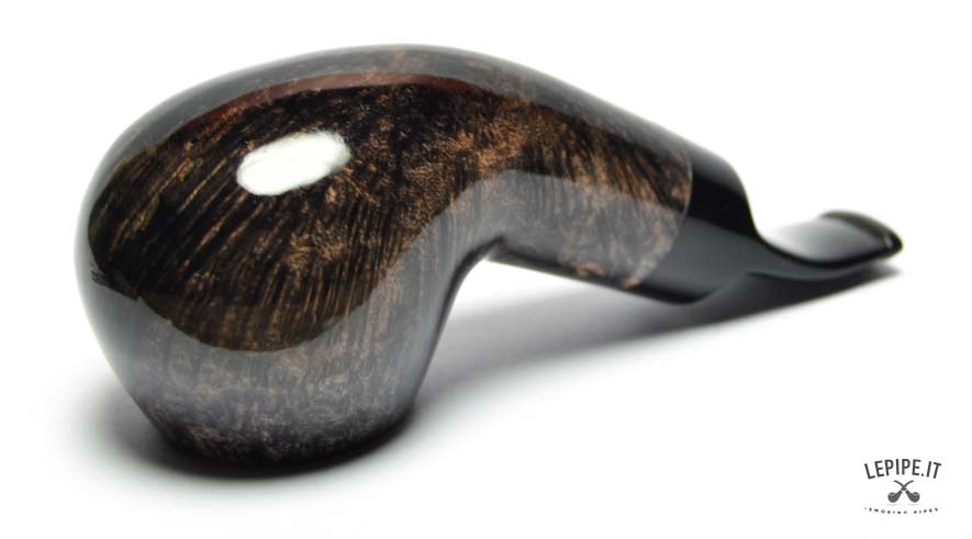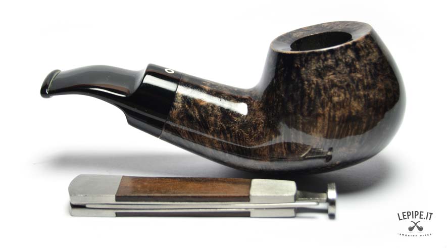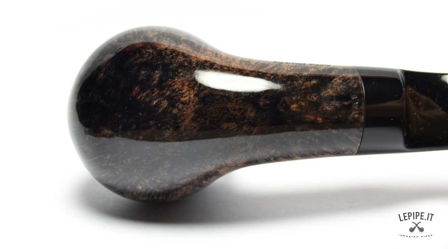 Equipped with a Calabash reverse system, this pipe ensures a dry, smooth draw by collecting moisture and enhancing flavor clarity. The slightly bent black acrylic stem fits the compact shape perfectly, providing comfort and a natural grip.