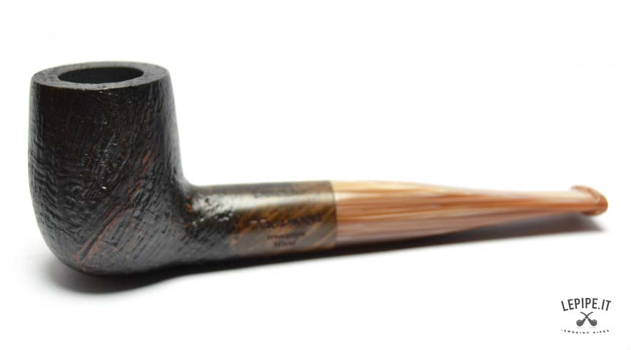 Essential in shape yet unique in detail, this Talamona Billiard pipe perfectly embodies Paolo Croci’s artisanal philosophy: enhancing simplicity through original and functional aesthetic choices. The dark sandblasted finish highlights the natural grain of the briar with a tactile, organic texture, beautifully balanced by the refined Revolution Wood acrylic stem, with its warm, wood-like marbled tones.
