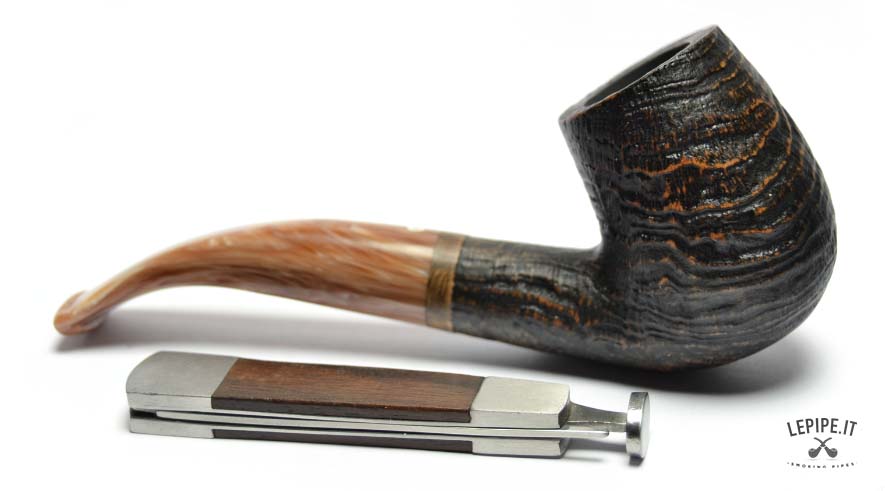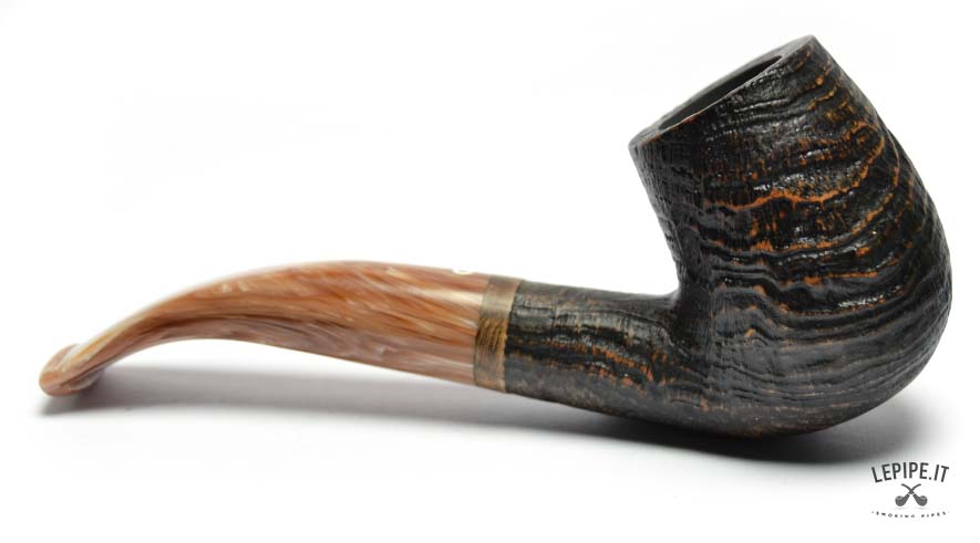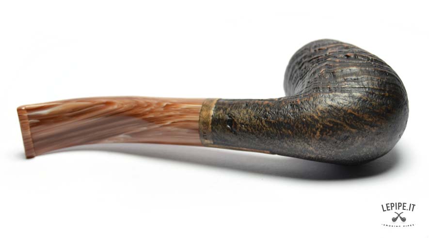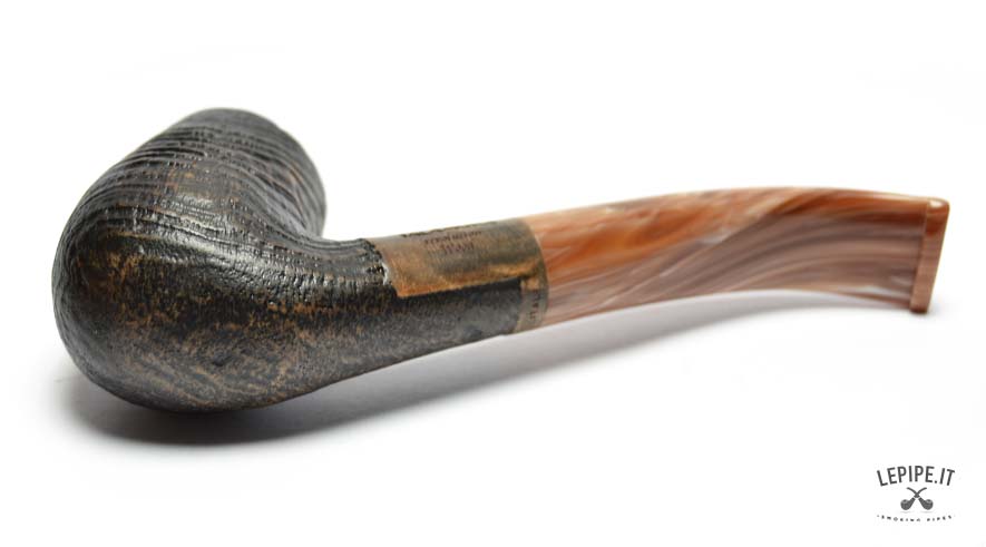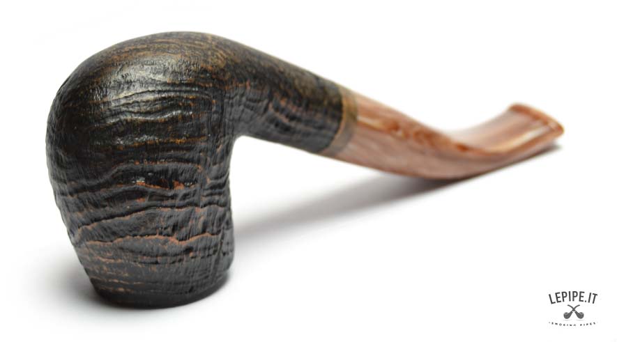 The interplay between the textured, rustic bowl and the polished elegance of the stem creates a fascinating contrast in both look and feel. Combined with the curved shape, this makes the pipe ideal for smokers who value both function and design.