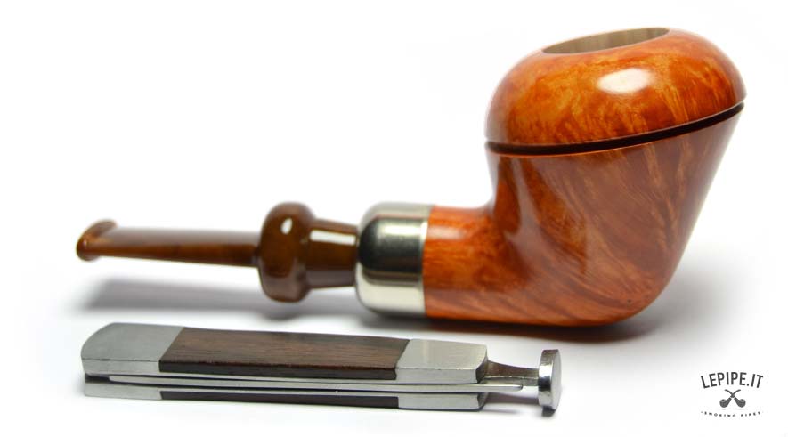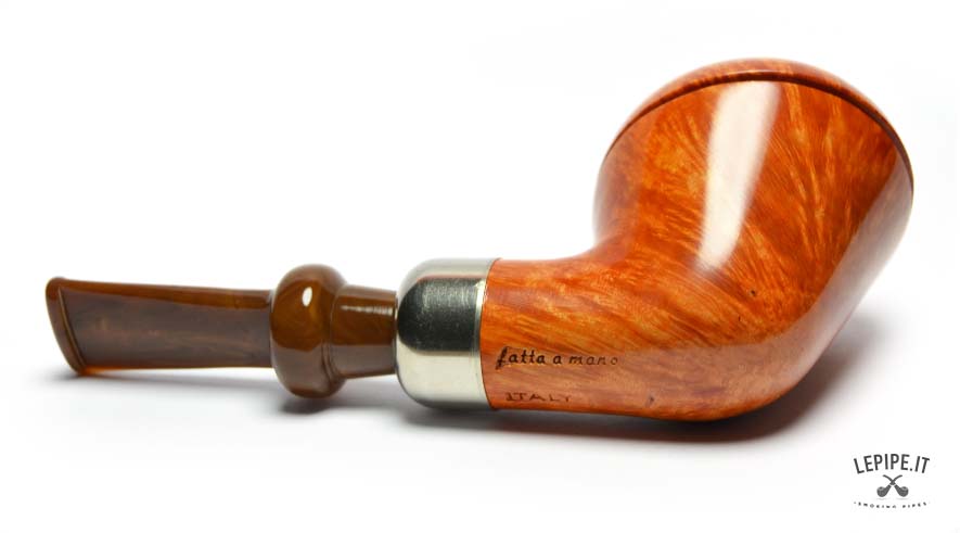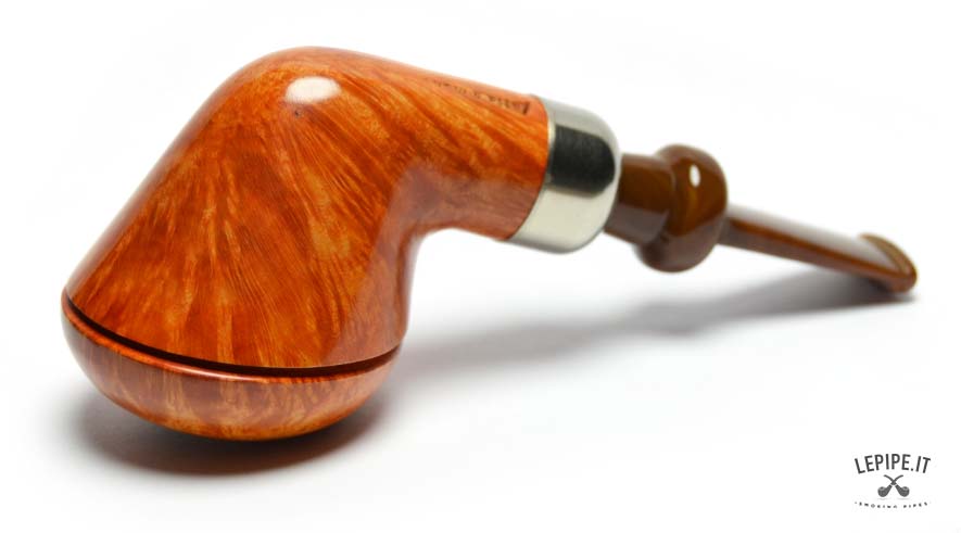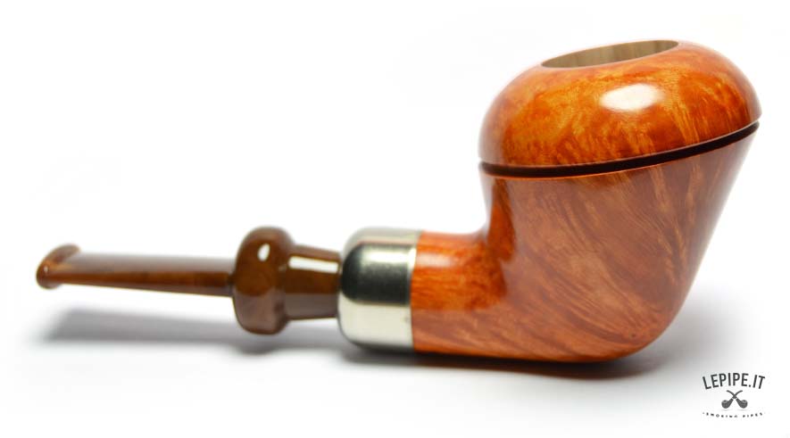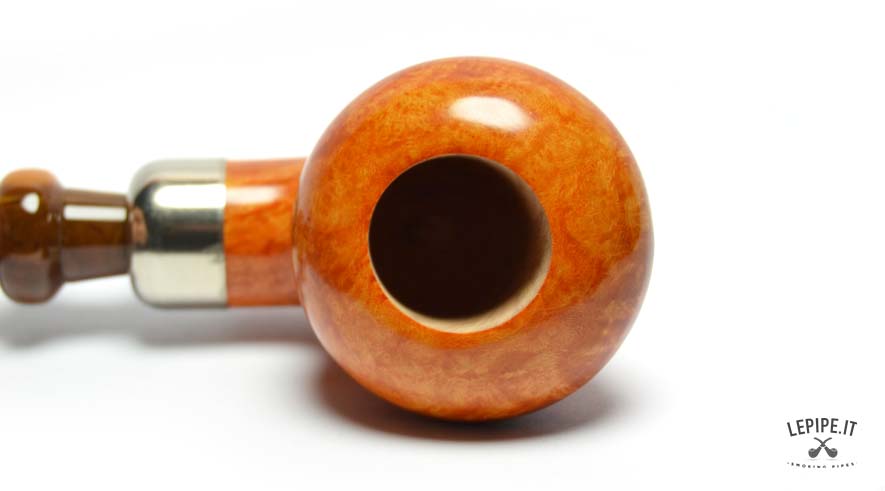 Classified in the outstanding Group SG, this pipe showcases superior briar quality: tight, consistent flame grain enhanced by a golden, glossy finish that lights up the surface with warm, vibrant tones. A sharply cut line around the rim creates a refined “cap” effect, adding a sophisticated architectural touch.