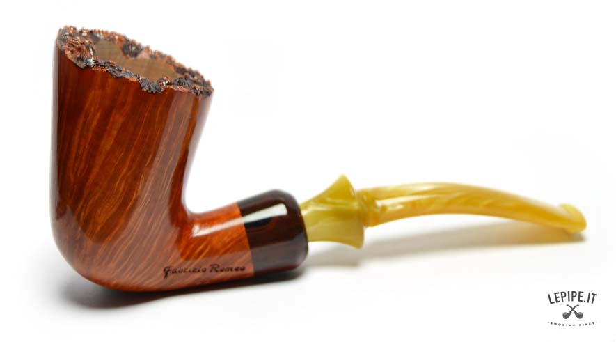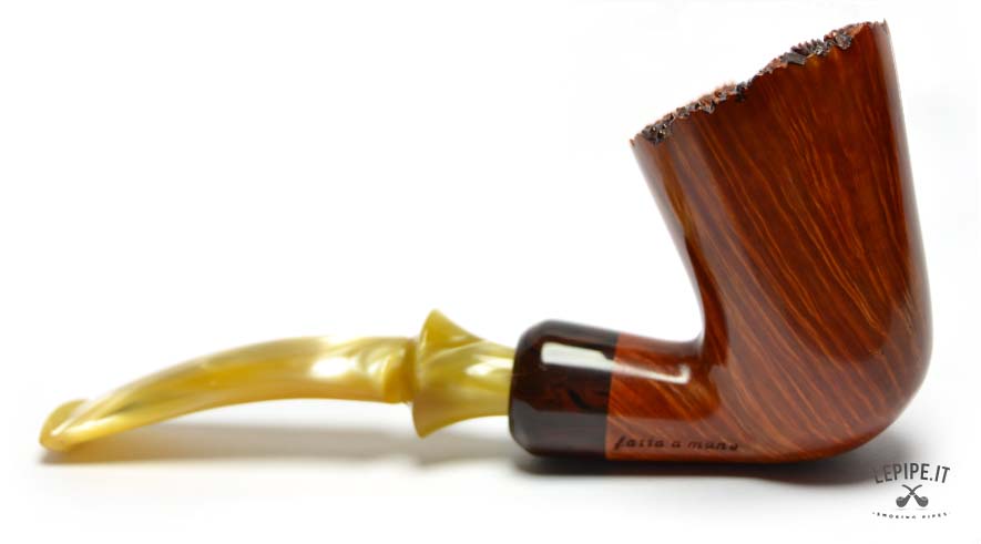 Weighing just 47 grams, this pipe is impressively light, and thanks to its ergonomic profile, it's suited for long smokes as well as for visual admiration. Every element reflects the meticulous craftsmanship and creative energy that define Fabrizio Romeo's work — pipes conceived not only as tools but as small architectures to experience and admire.