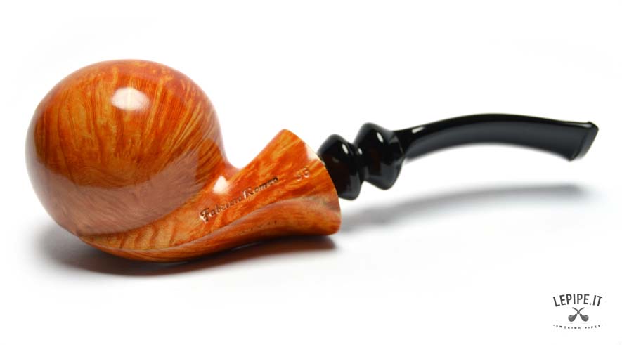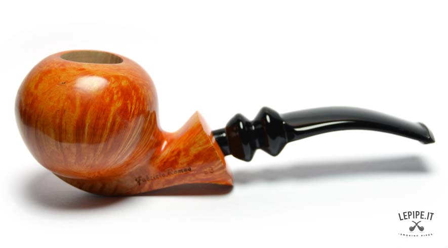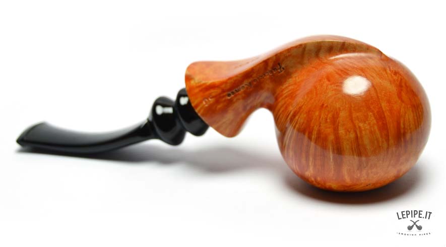 Bold, sculptural, and perfectly balanced, this handmade briar pipe by Fabrizio Romeo — a Freeform shape — is one of the most expressive and accomplished pieces by the artisan. The rounded, almost spherical bowl defies gravity, resting confidently on a sharp, flat base that allows the pipe to stand upright with ease. A Stand-Up pipe that embraces movement rather than restraint.