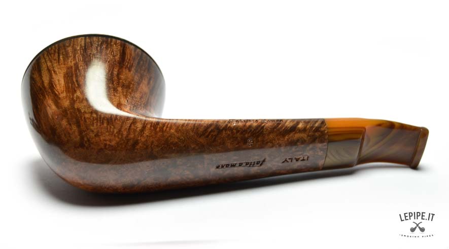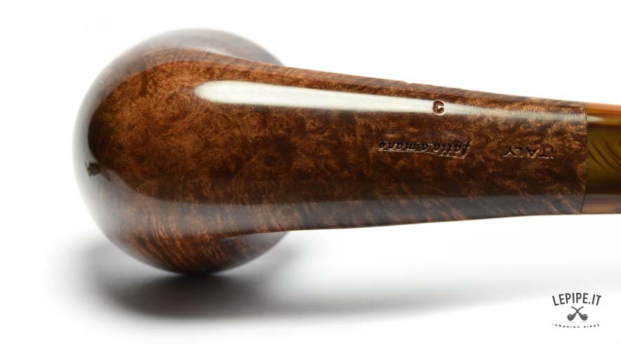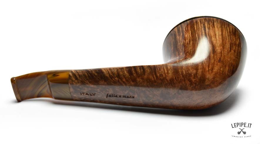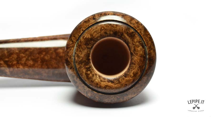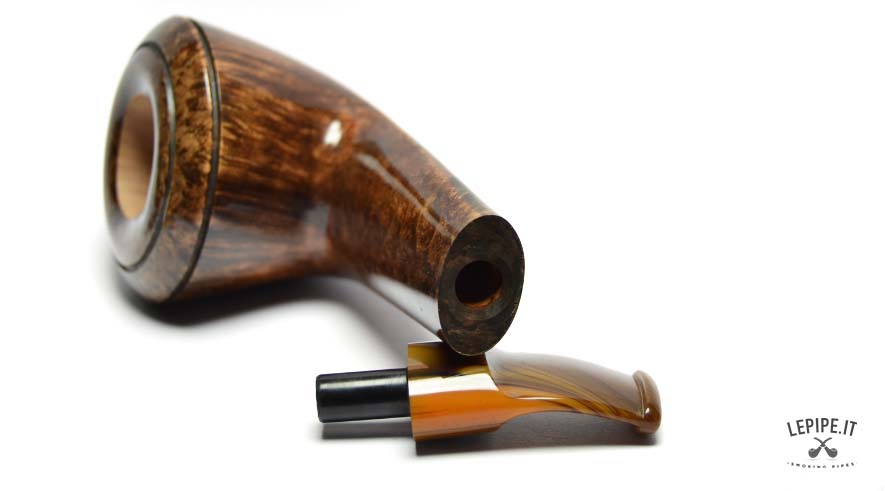 The stem, made of shaded acrylic that shifts from honey to deep brown, echoes the color of the bowl and completes the design with graceful continuity. With a 23 mm internal diameter, this pipe is perfect for broad cuts and full-bodied smokes, while the 54 mm outer diameter gives it a confident yet refined presence in hand.