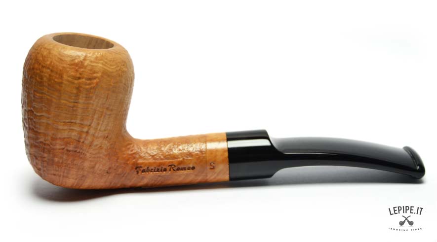 This sandblasted Bent Billiard pipe embodies Fabrizio Romeo’s core philosophy: honest craftsmanship and respect for the material. The gentle sandblasting reveals a soft, undulating pattern across the bowl — subtle but clearly defined — that enhances the classic silhouette of the shape.