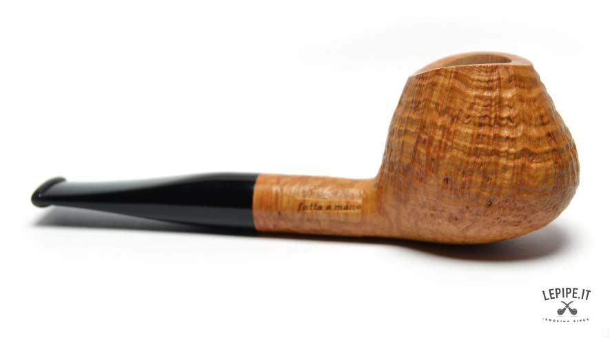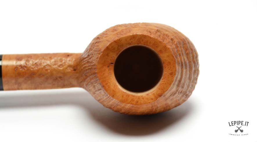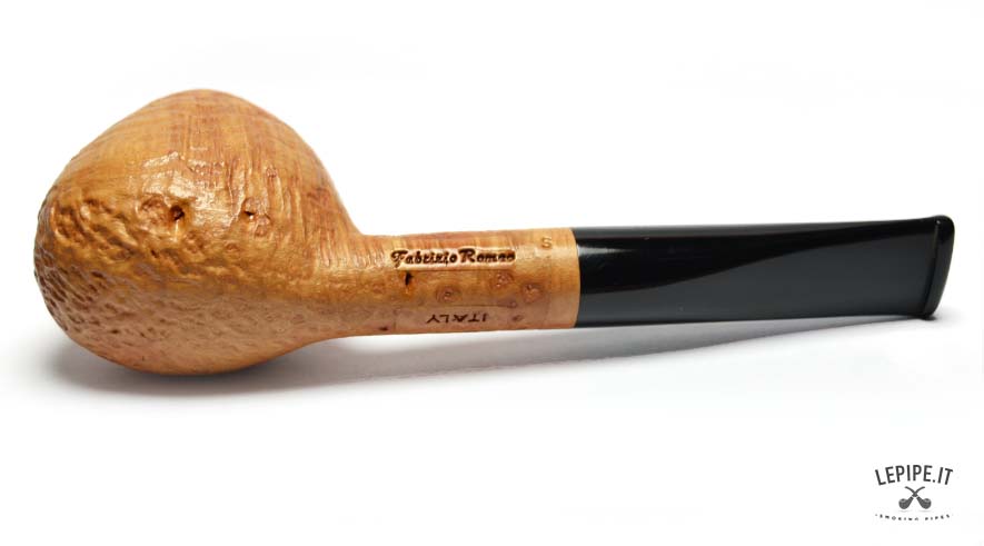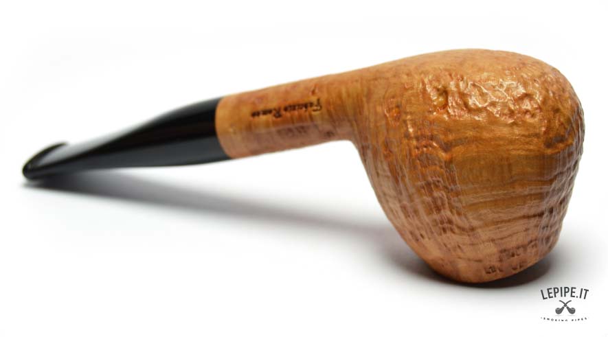 Soft lines and outstanding ergonomics define this sandblasted Brandy pipe handmade by Fabrizio Romeo. The full, slightly tilted bowl fits naturally in the hand, while the deep sandblasting adds texture and visual interest, beautifully highlighting the briar’s natural grain with a sculptural feel.