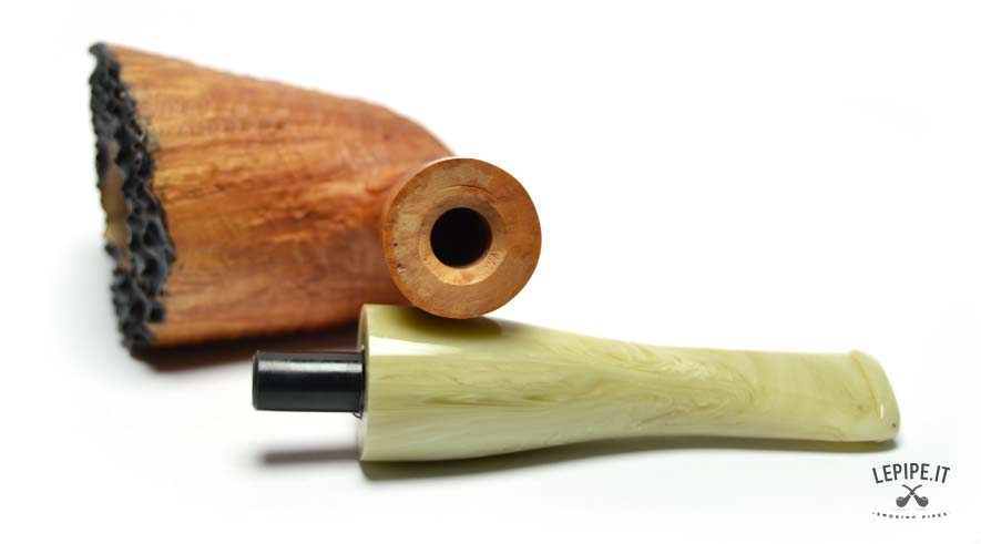The unstained briar lets the grain show through the blast, while the marbled ivory acrylic stem brings contrast and character to the whole composition. Belonging to Group S, this pipe is ideal for those seeking a solid, well-crafted daily smoker with a unique aesthetic twist.