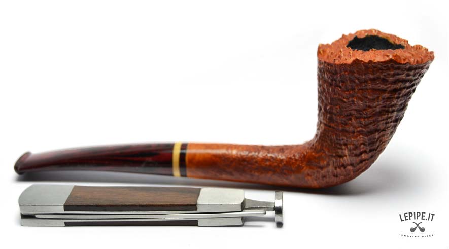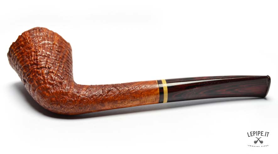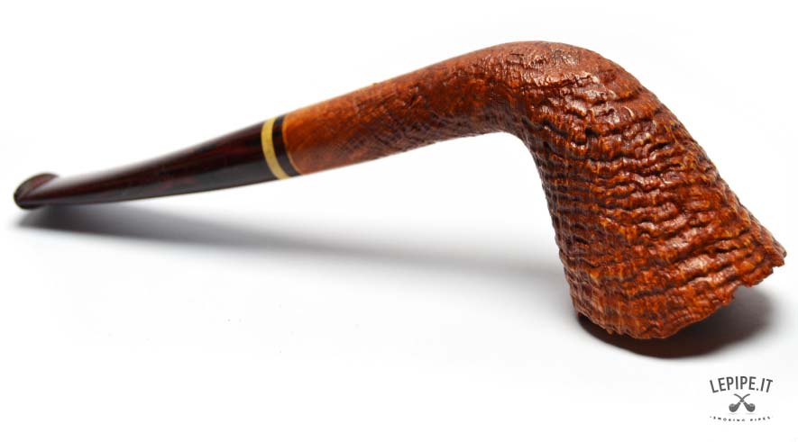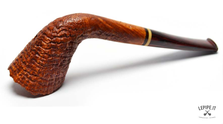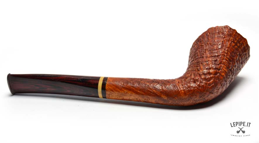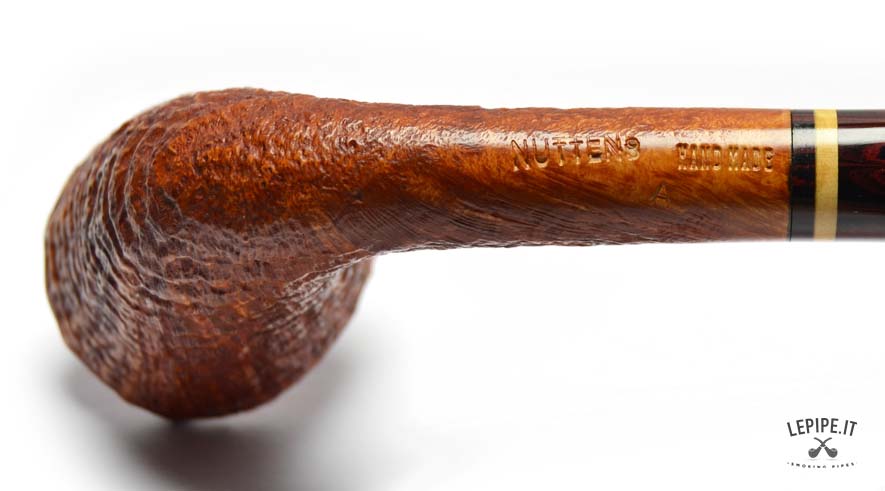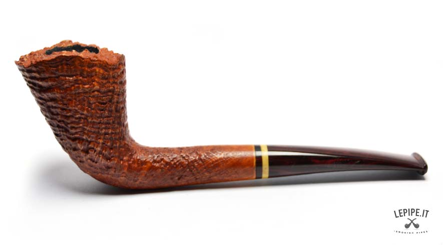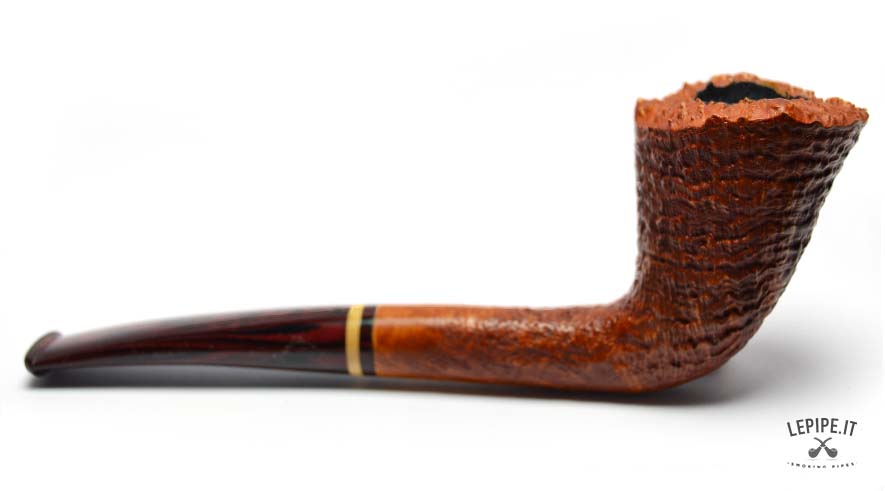 This Bent Dublin pipe, handcrafted by Bruno Nuttens, is a perfect blend of elegant shape and functional design. The tall, forward-leaning bowl is enhanced by its natural, rusticated rim, adding character and celebrating the raw beauty of briar. The deep sandblast finish reveals the wood’s texture while offering a pleasant grip in hand. The cumberland stem, accented with a cream and black band, complements the warm tones of the bowl beautifully. Made without a filter, it ensures a clean, unfiltered smoke ideal for those who value authenticity. As with all Nuttens pipes, the artisanal quality is evident in every detail.
