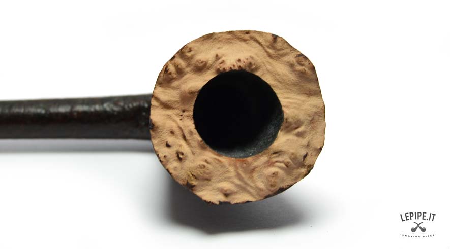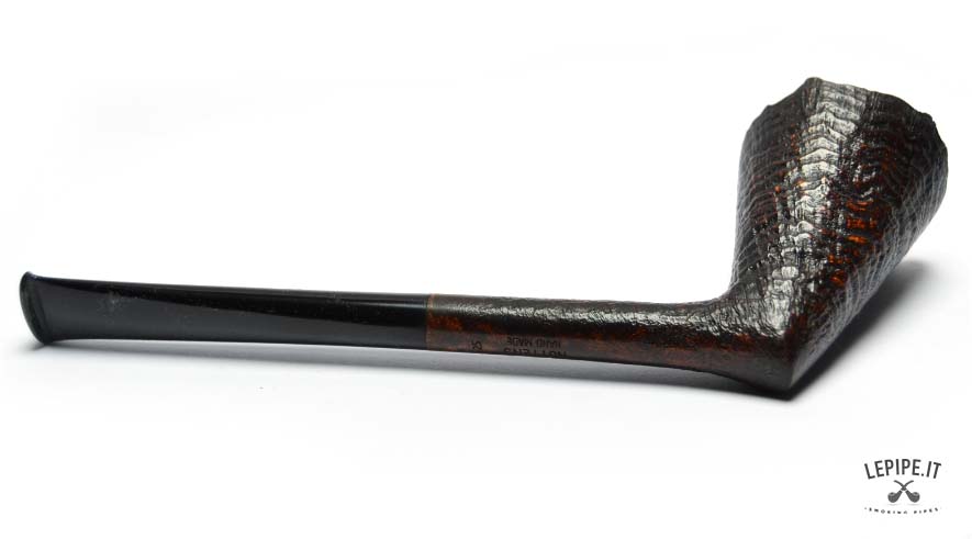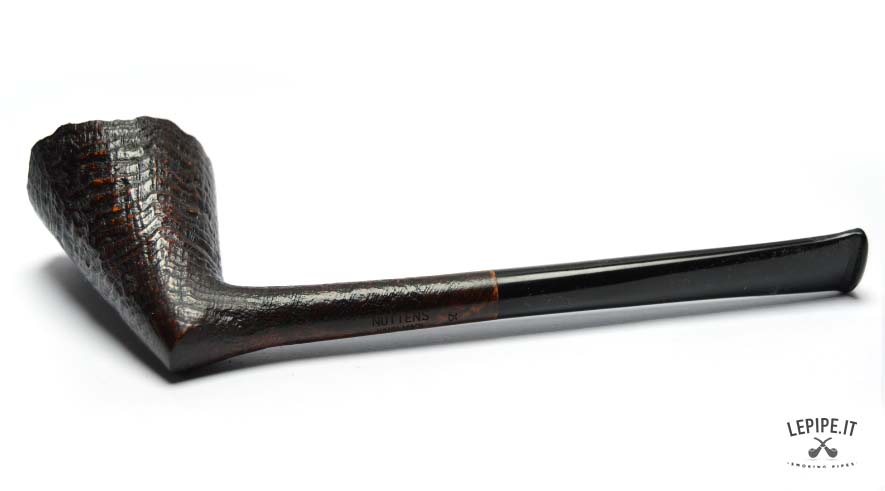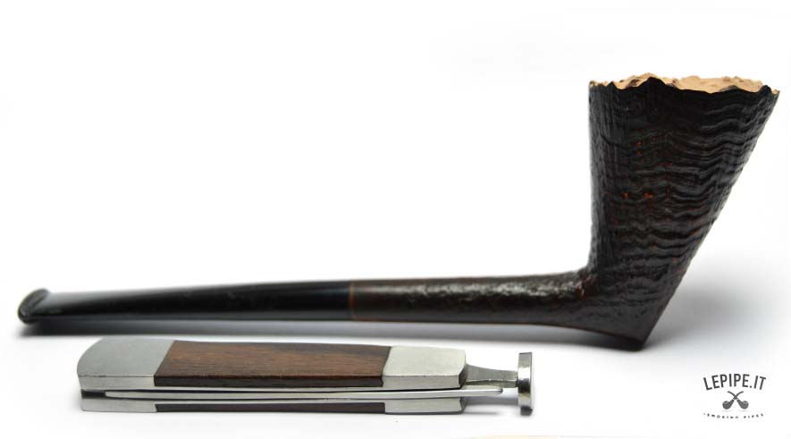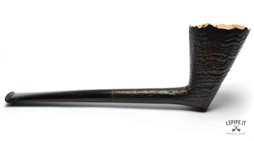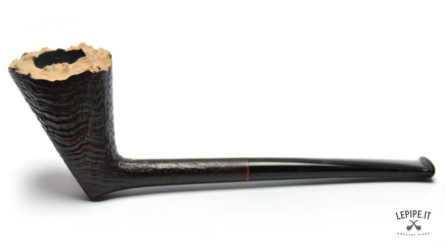 A sleek and sharp Dublin, entirely handmade by Bruno Nuttens, this pipe stands out for its dynamic silhouette and deep sandblasted finish. The contrast between the dark bowl and the natural, raw rim adds a rugged, authentic elegance to the piece. The ebonite stem is simple and refined, perfectly aligned with the minimalist shape. As always, the absence of a filter ensures a clean, unfiltered smoke ideal for purists. Bruno Nuttens is known for his focus on balance and functionality, crafting each pipe to offer a refined and uncompromised smoking experience.