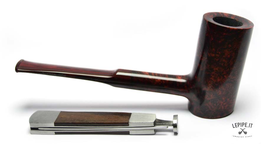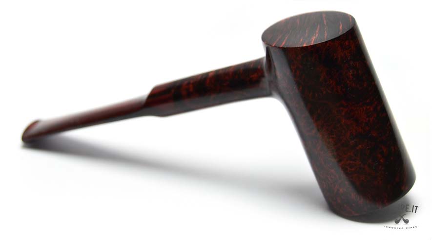 With its flat base and vertical architecture, this handmade poker by Bruno Nuttens blends balance and personality. The flamed briar is enhanced by a deep, reddish finish typical of Nuttens’ style. The cumberland stem is perfectly matched with the shape, adding a refined touch. As always, the lack of a filter ensures a pure and flavorful smoke. This shape, often underrated, is highly appreciated by those who prefer a pipe that stands on its own — practical, functional, and refreshingly original.