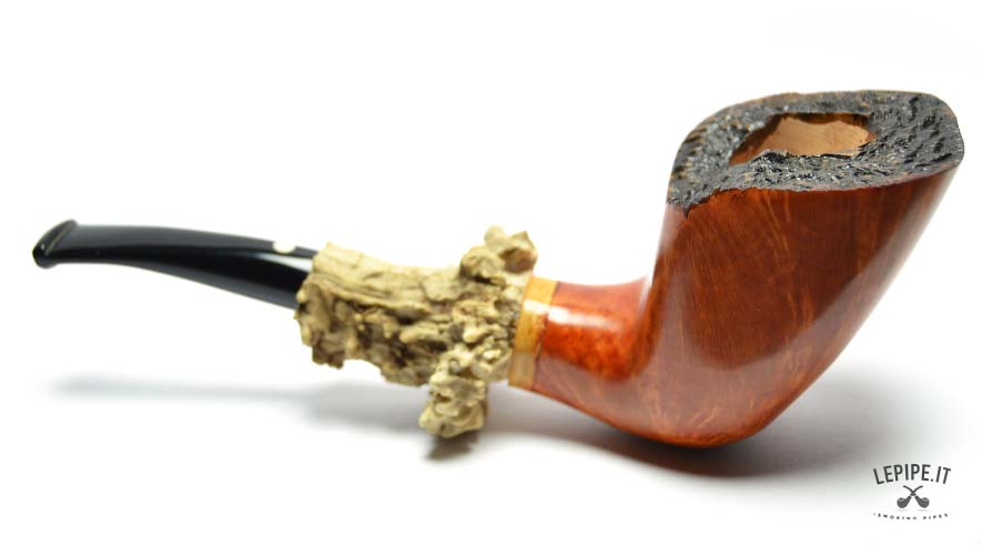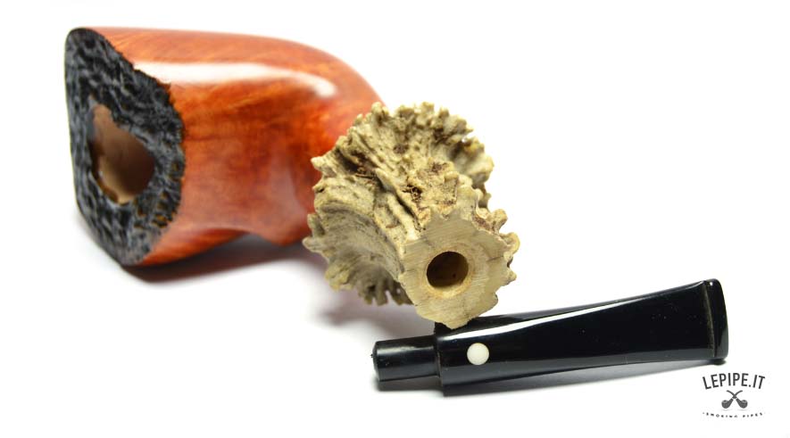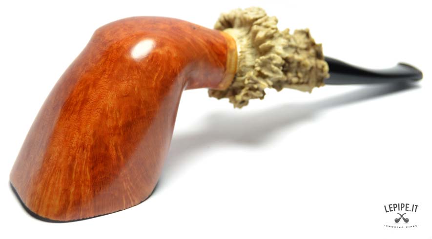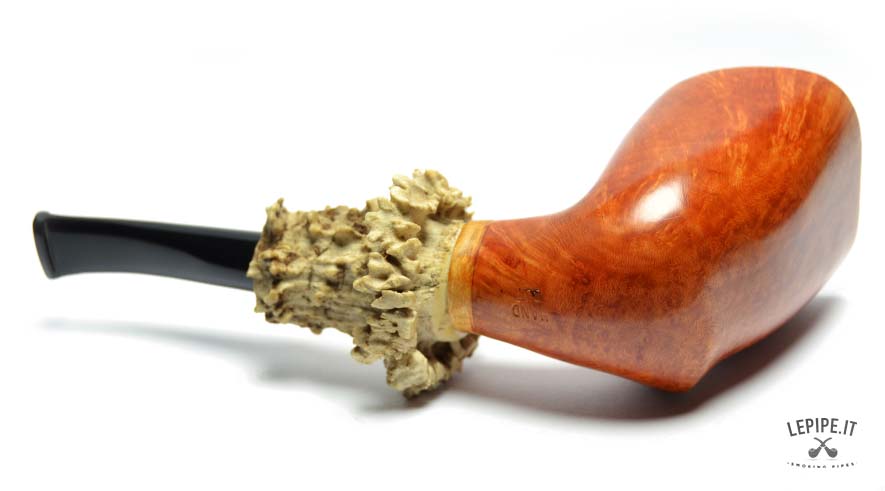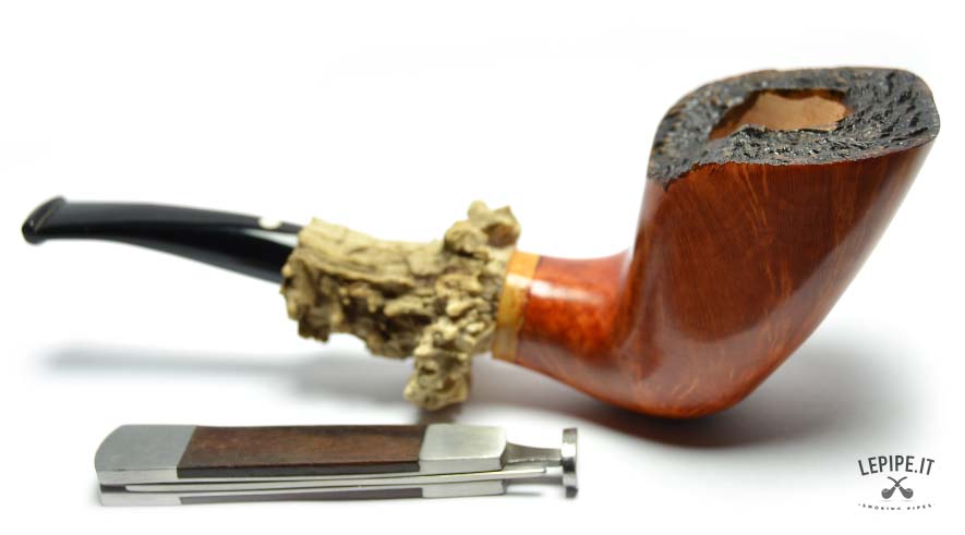 The Freeform shape lets the briar express its natural grain freely, while the raw, bark-edged rim enhances the pipe’s authentic beauty. Thanks to its stable base, it stands securely on its own—ideal for those seeking a pipe that is both sculptural and practical, ready to be smoked or displayed.