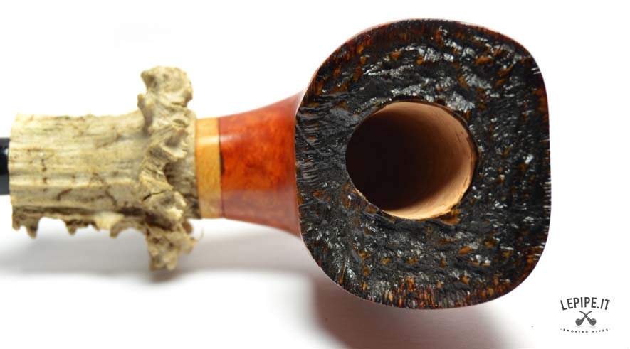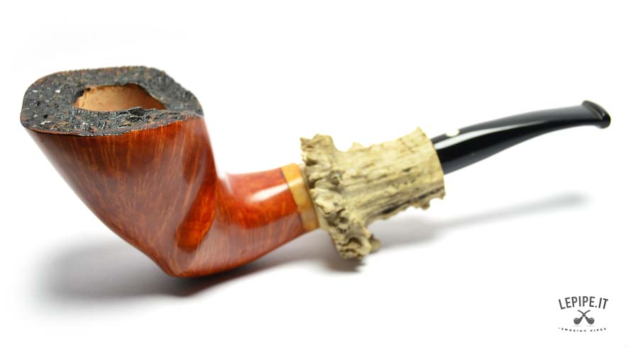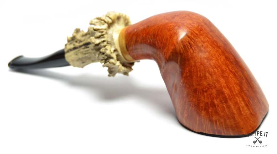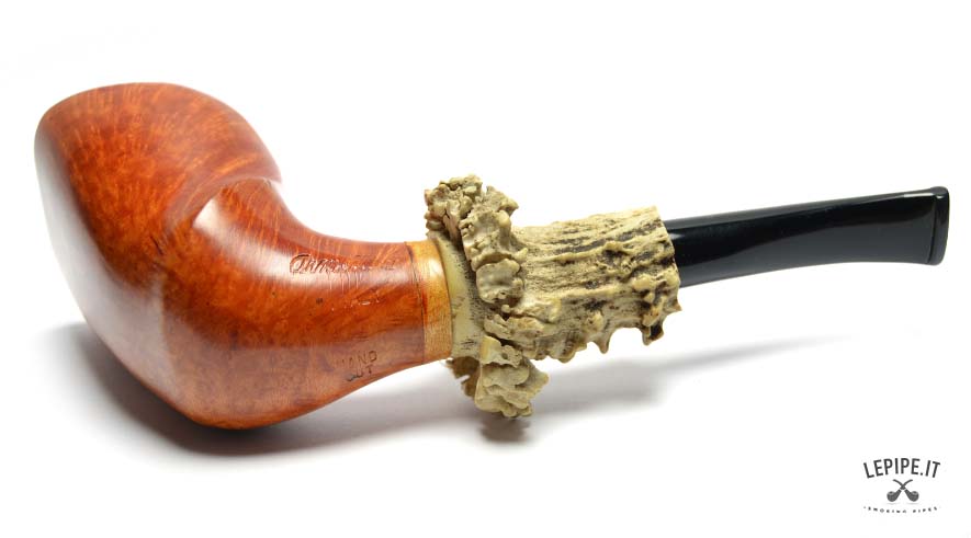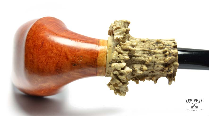 This model fully embodies the love for handmade pipes in every detail. Crafted from natural briar and designed as a Stand-Up, it immediately catches the eye with its bold aesthetic. The true focal point is the long, sculpted natural horn shank extension, blending rustic charm and elegance with striking effect.